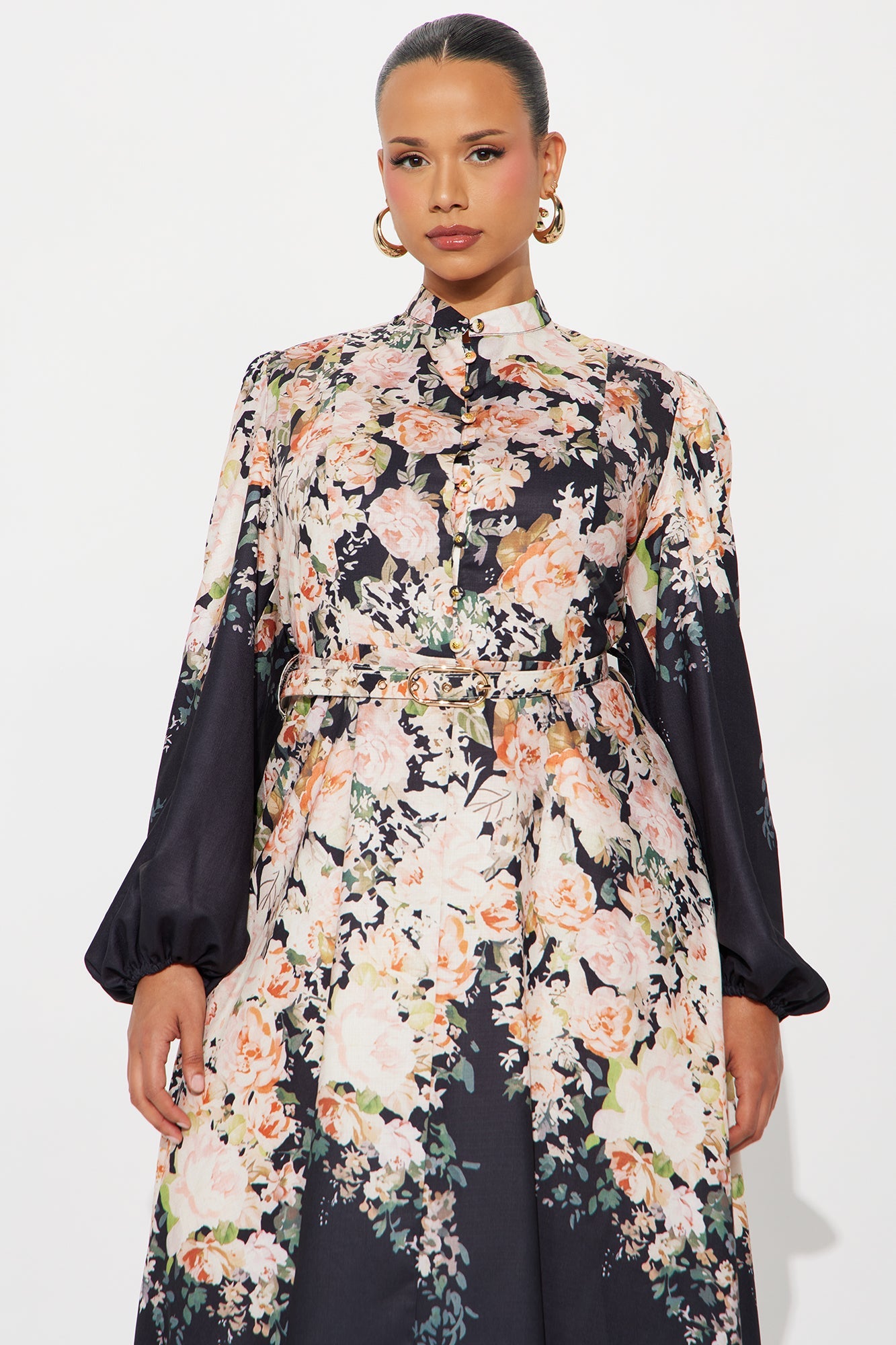 Adah Floral Belted Midi Dress - Black
