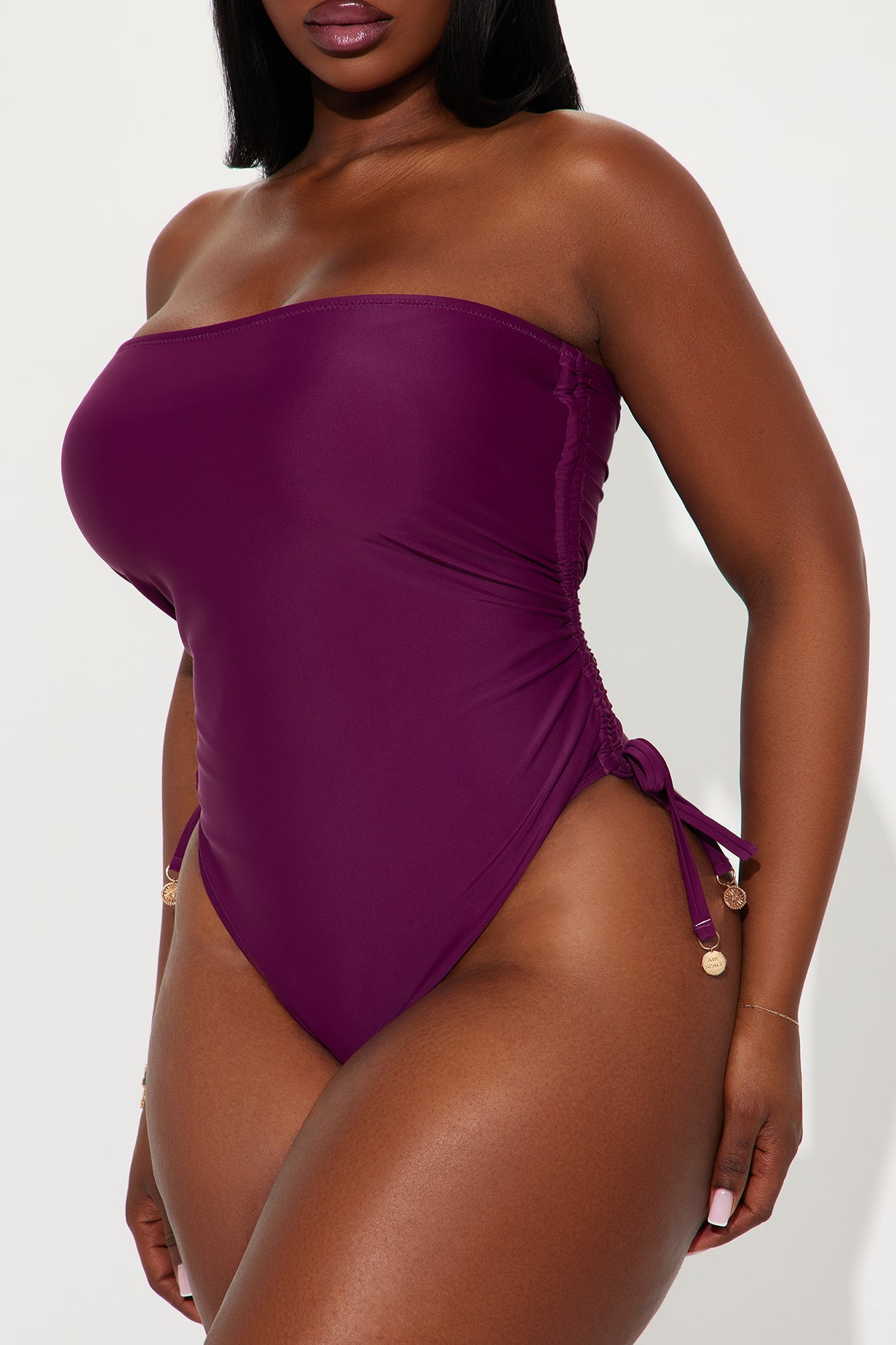 Akela Strapless Ruched 1 Piece Swimsuit - Purple