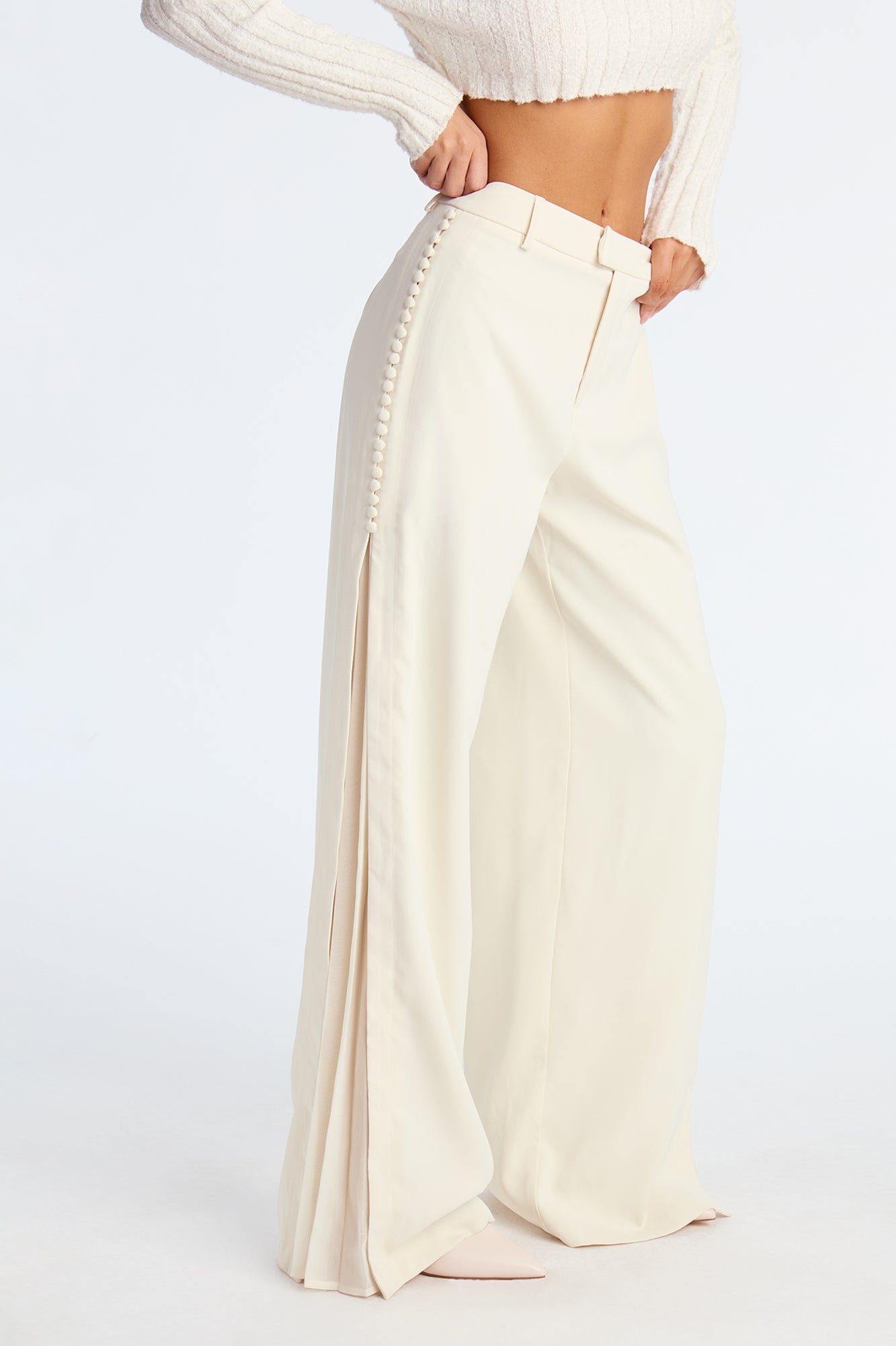 All In The Details Pleated Trouser Pant 33″ - Cream