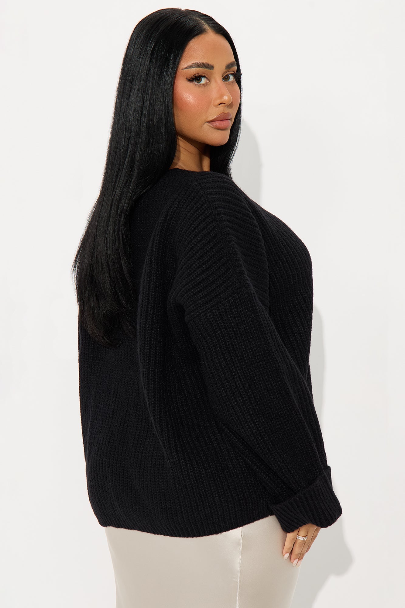 All Wrapped Up Chunky Knit Pullover Sweater - Black