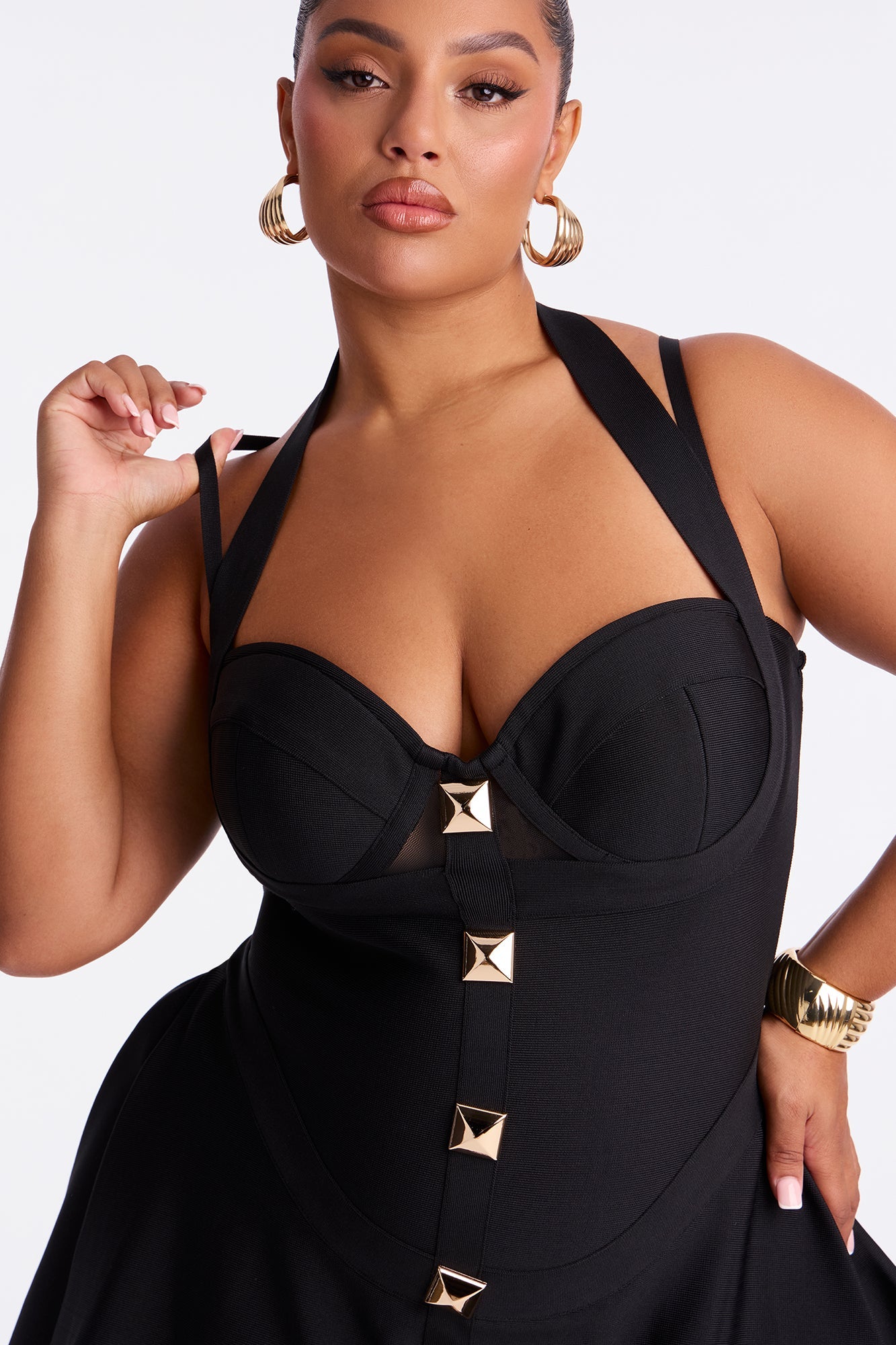 Alondra Asymmetrical Bandage Midi Dress - Black