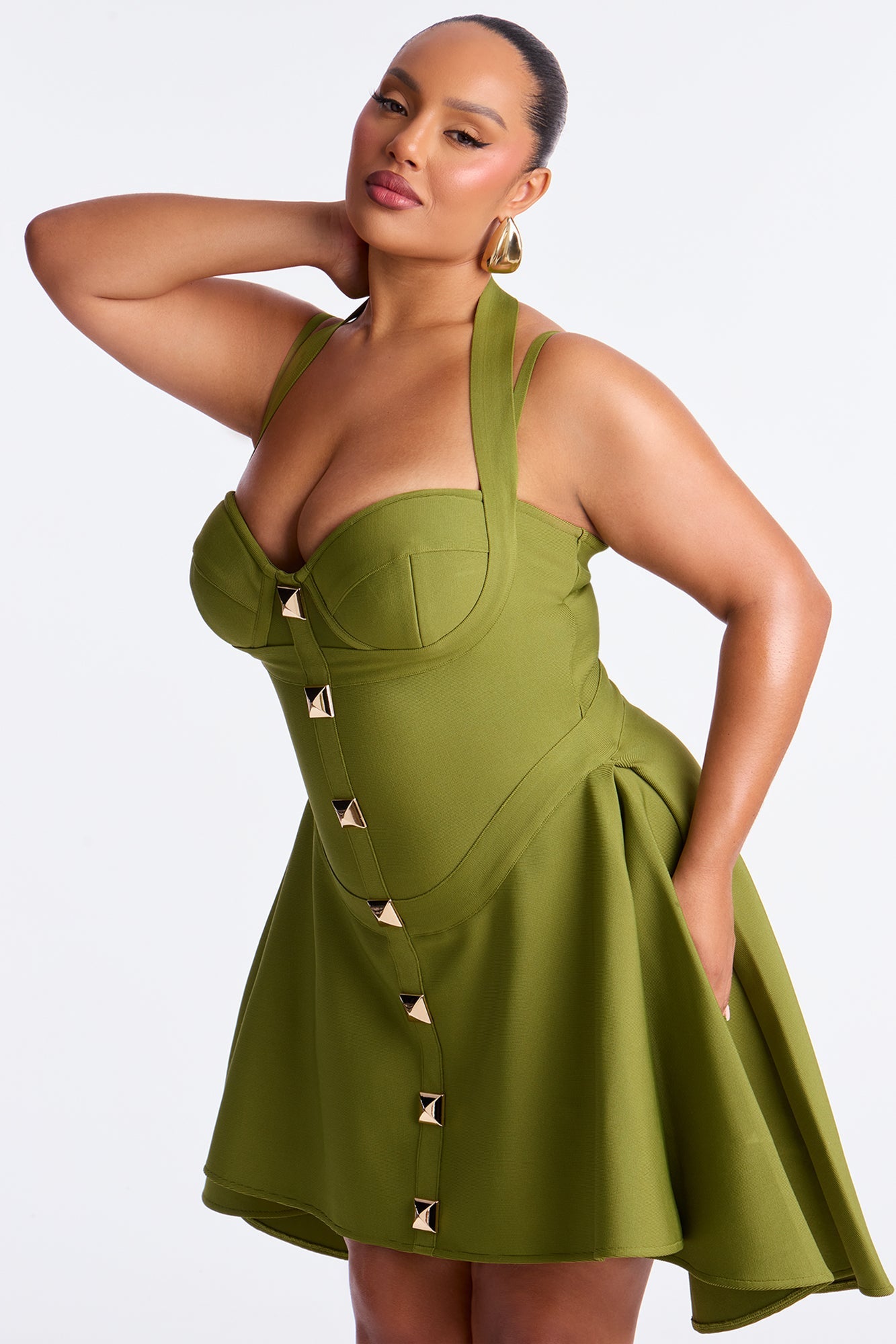 Alondra Asymmetrical Bandage Midi Dress - Olive