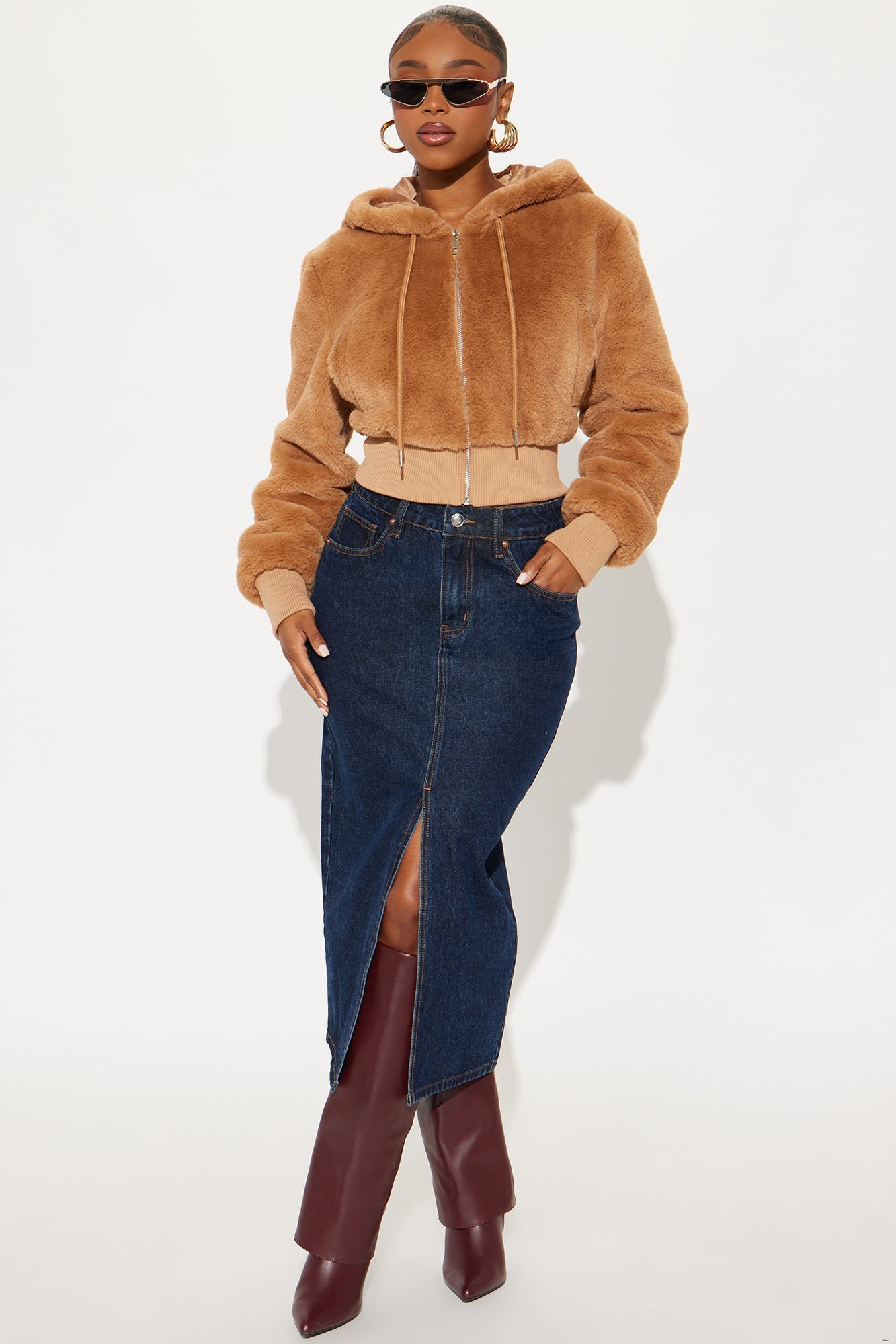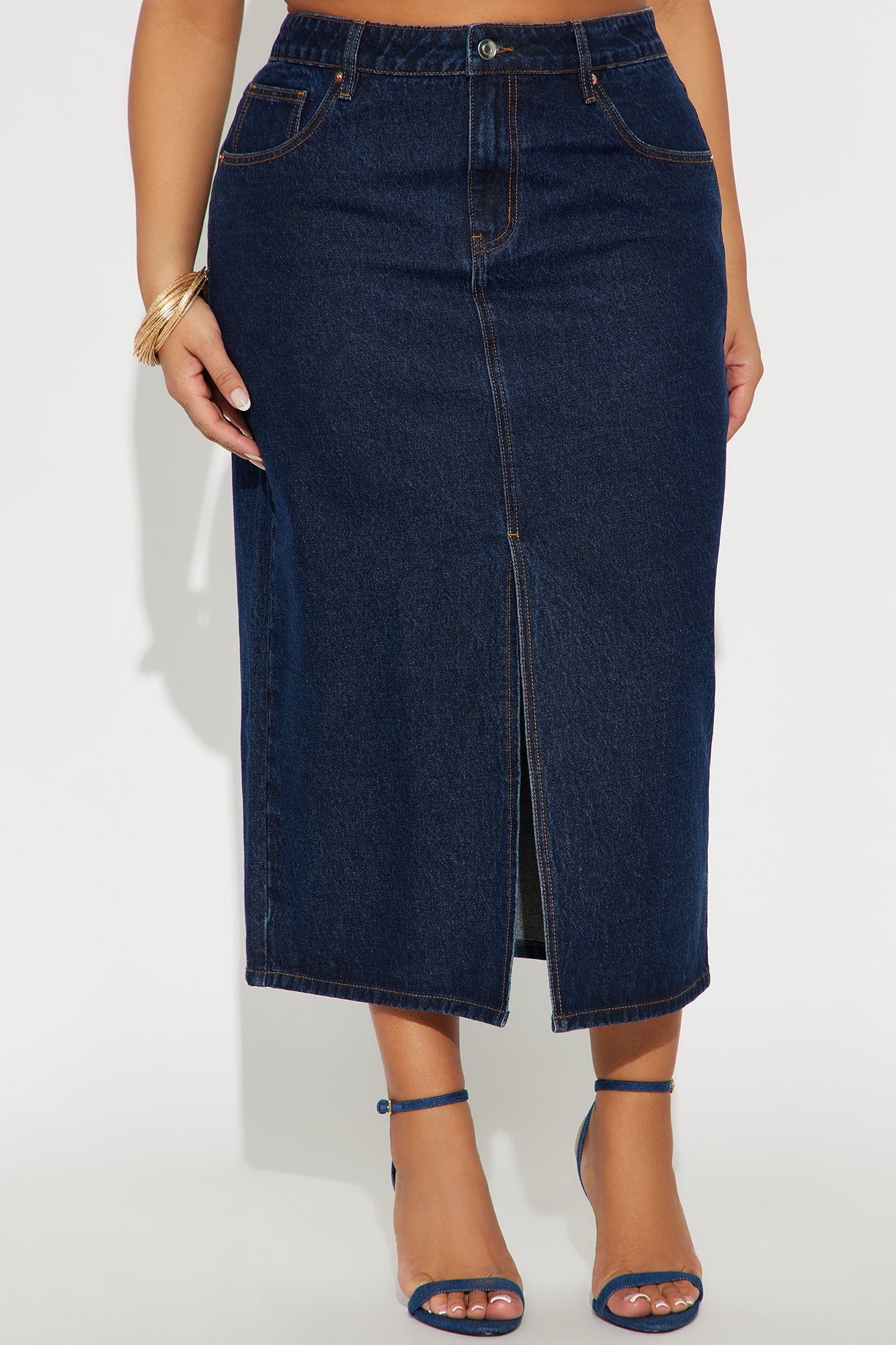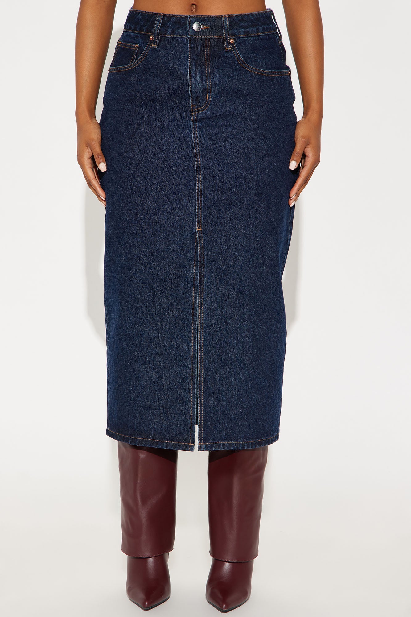 Amanza Rinse Wash Denim Midi Skirt - Rinse Blue Wash