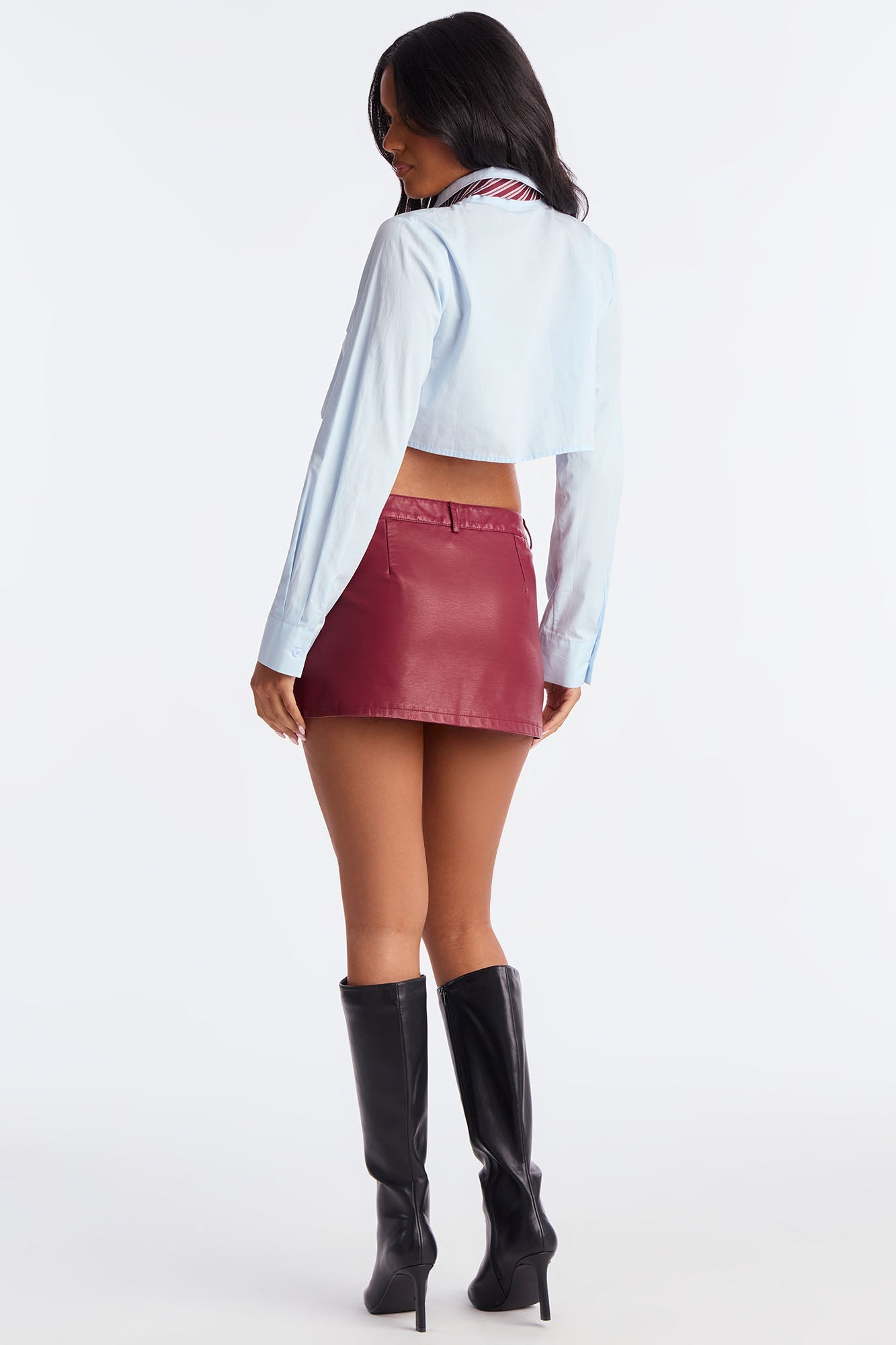 Amaya Washed Faux Leather Micro Mini Skort - Burgundy