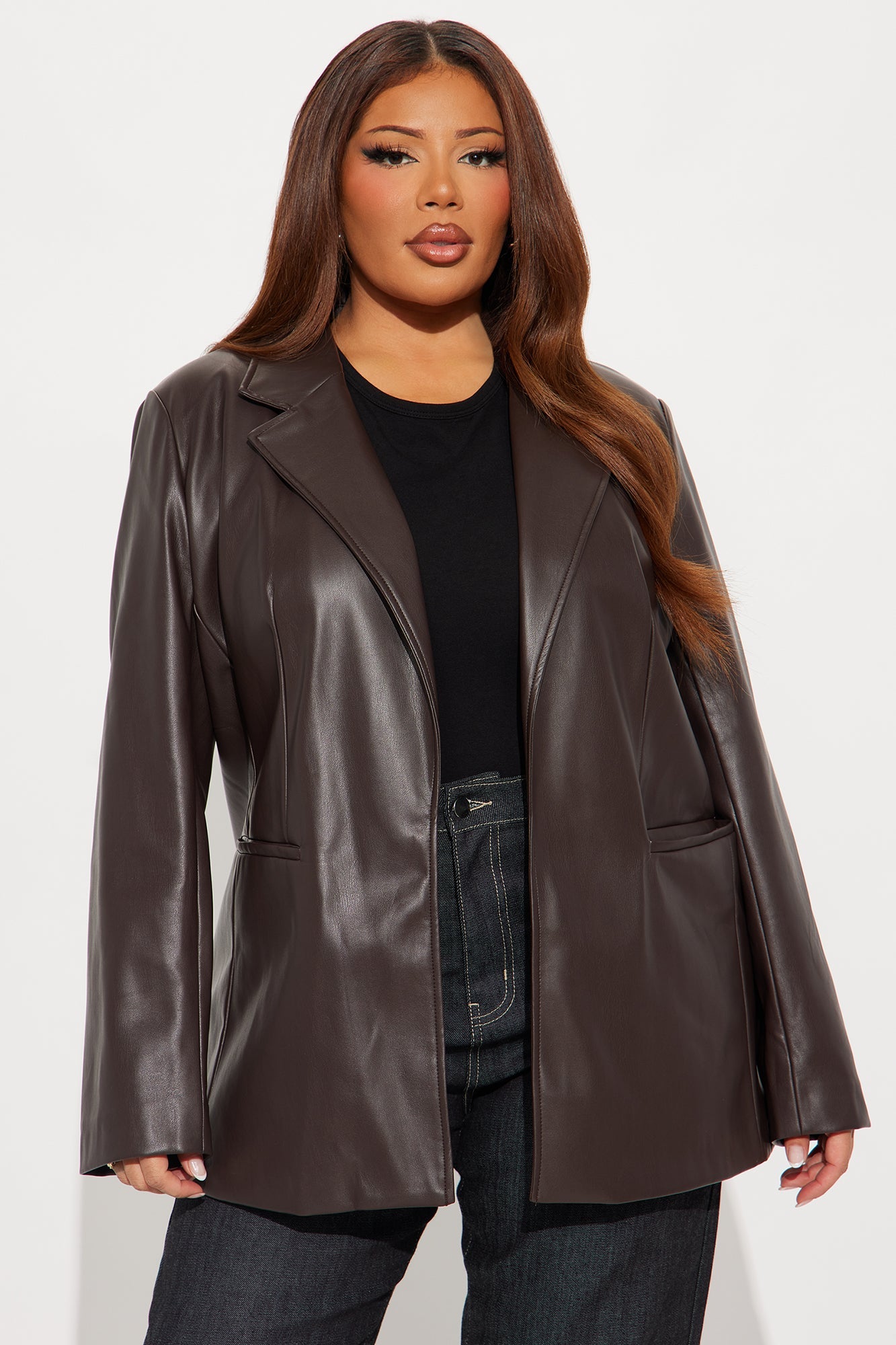 Ameli Oversized Faux Leather Blazer - Brown