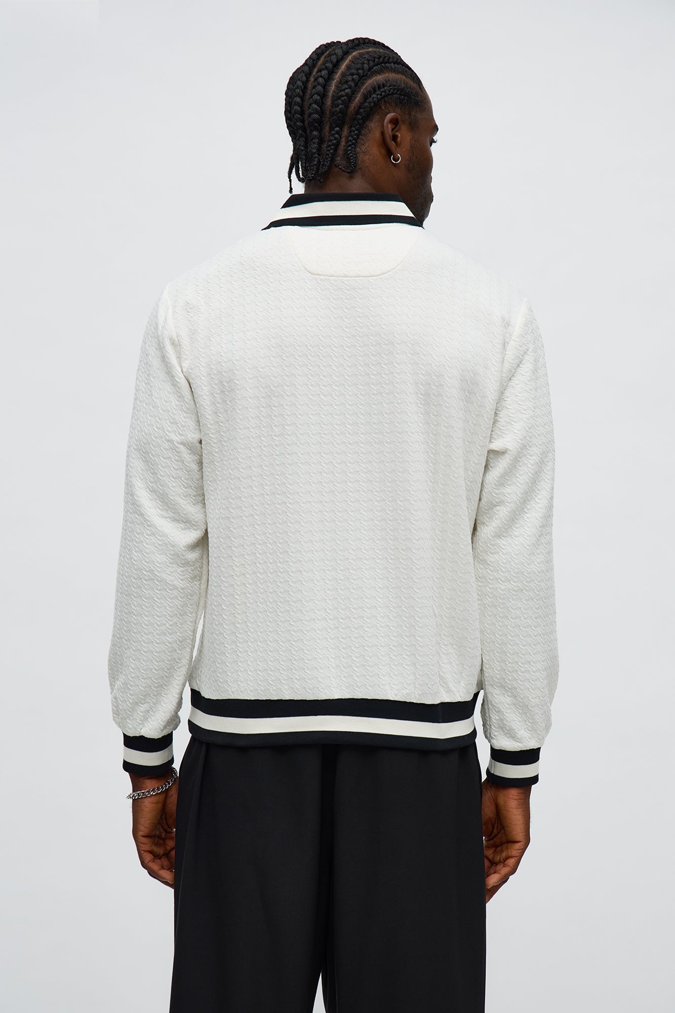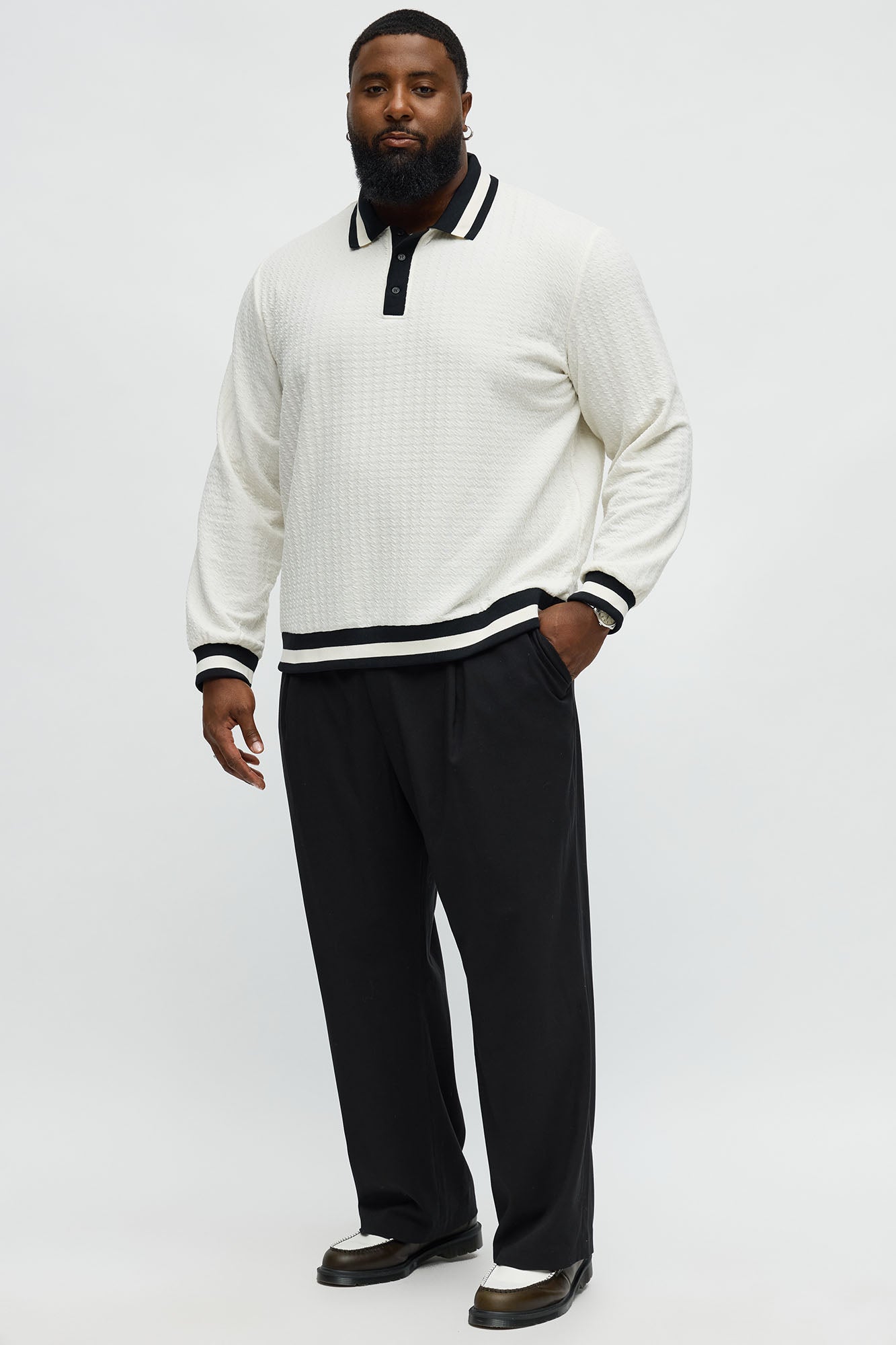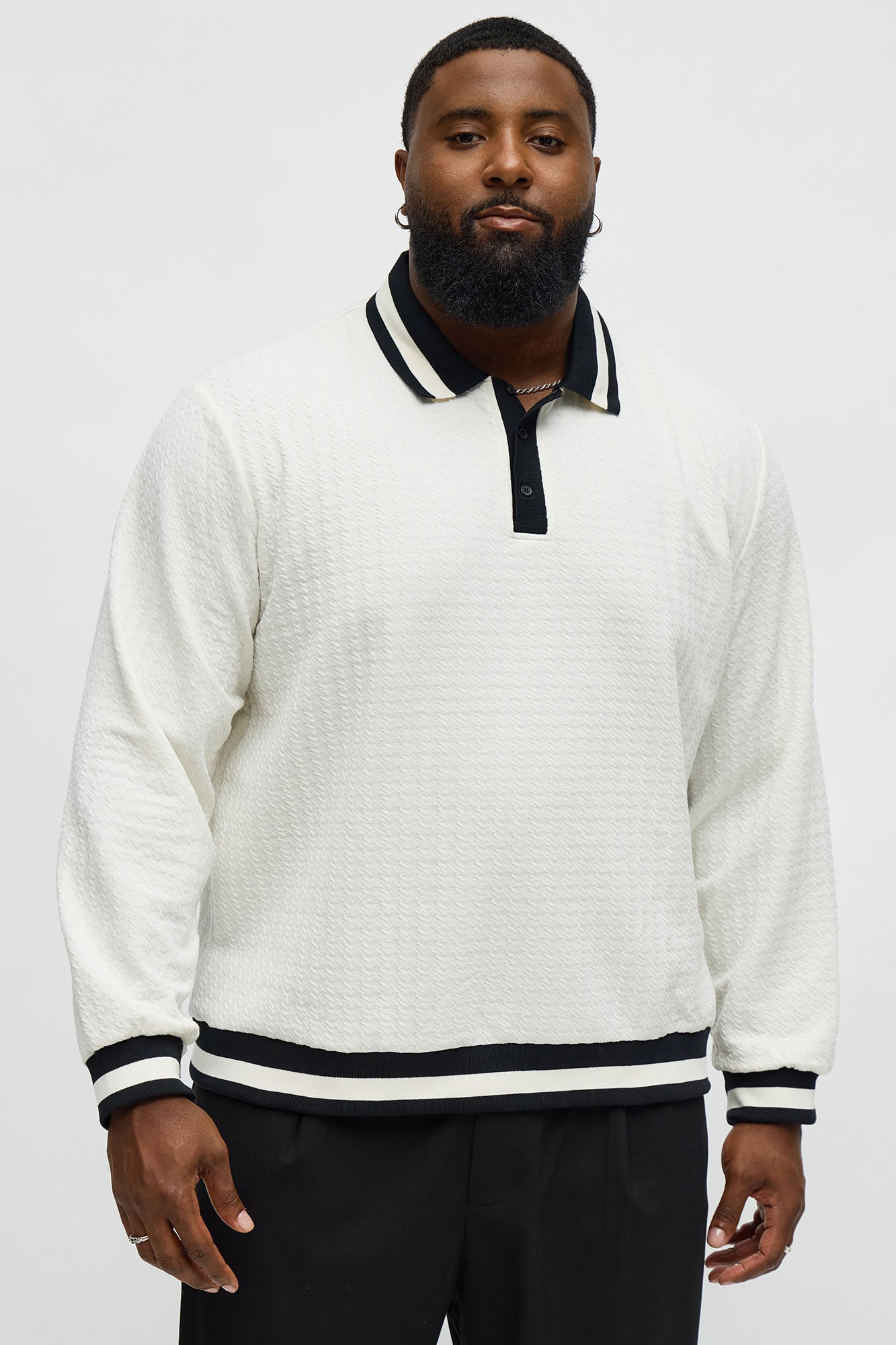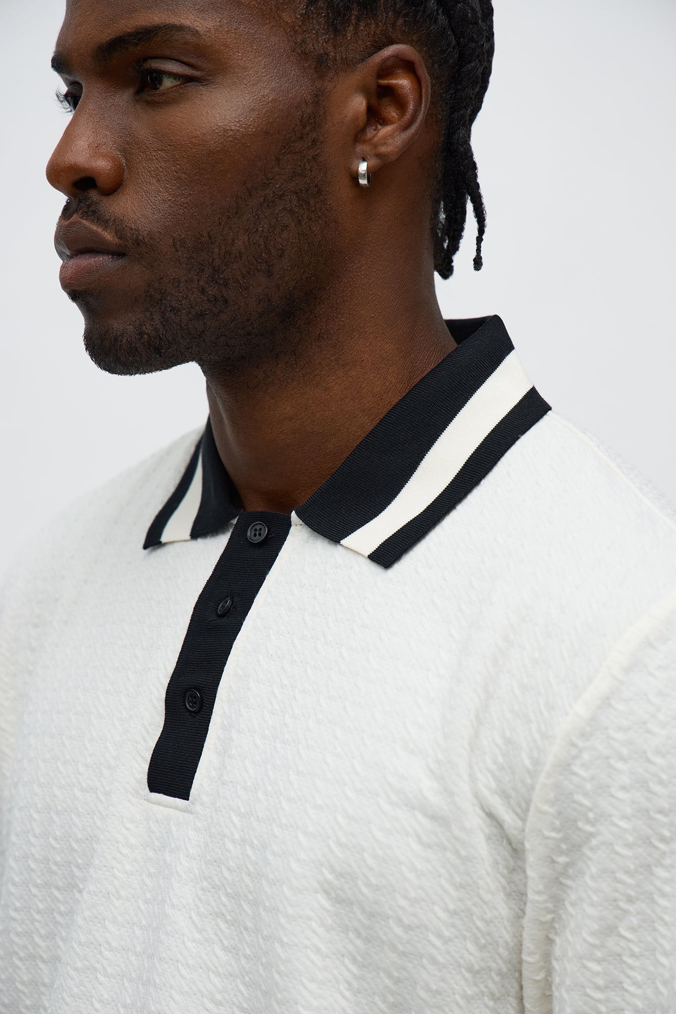 Andrew Textured Knit Long Sleeve Polo - Cream/combo
