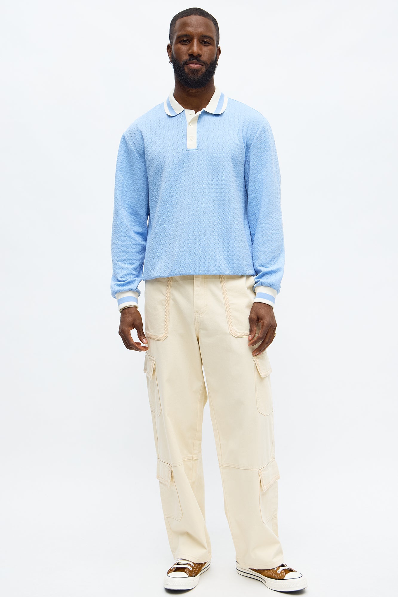 Andrew Textured Knit Long Sleeve Polo - Light Blue