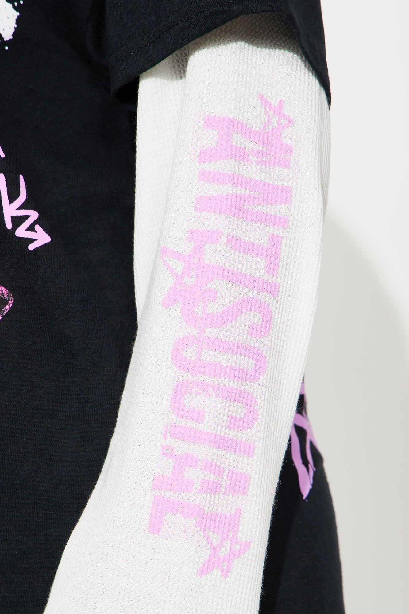 Antisocial Lips Long Sleeve Thermal 2Fer Tee - Black