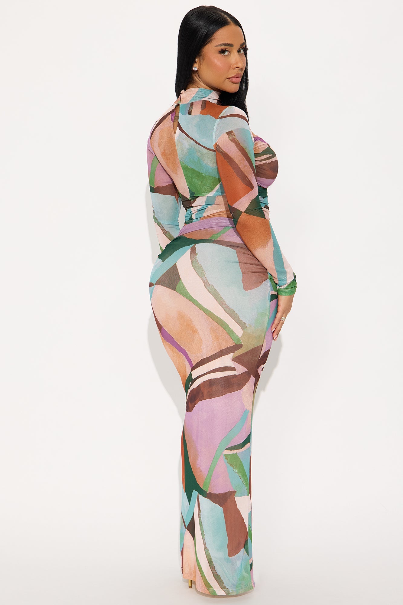 Appreciate Me Mesh Maxi Skirt Set - Brown/combo