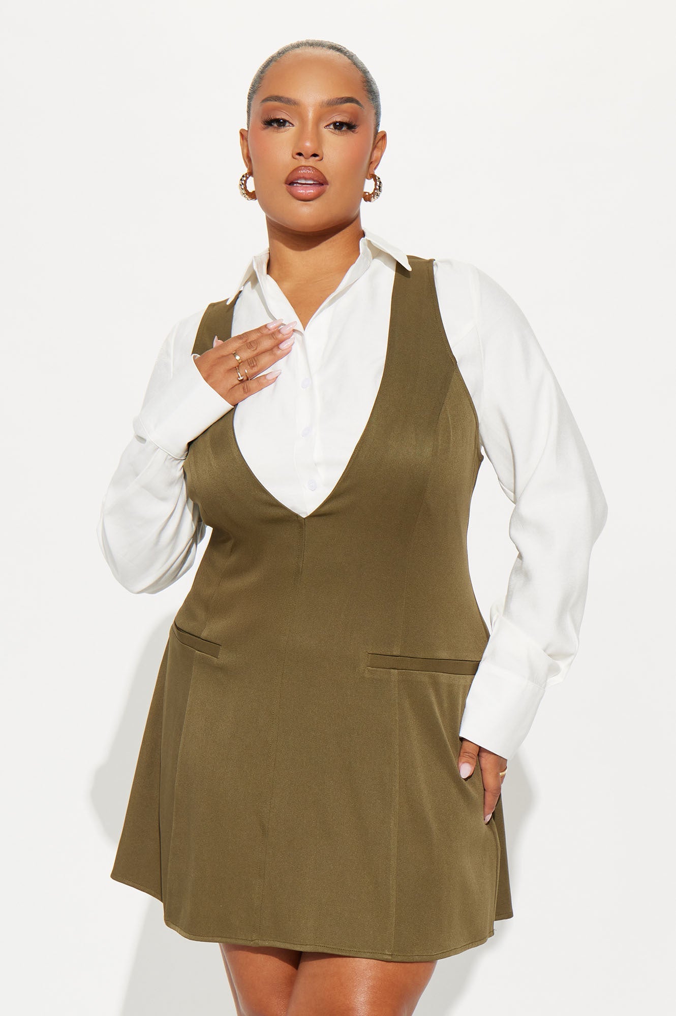 Arlene Long Sleeve Mini Dress - Olive/combo
