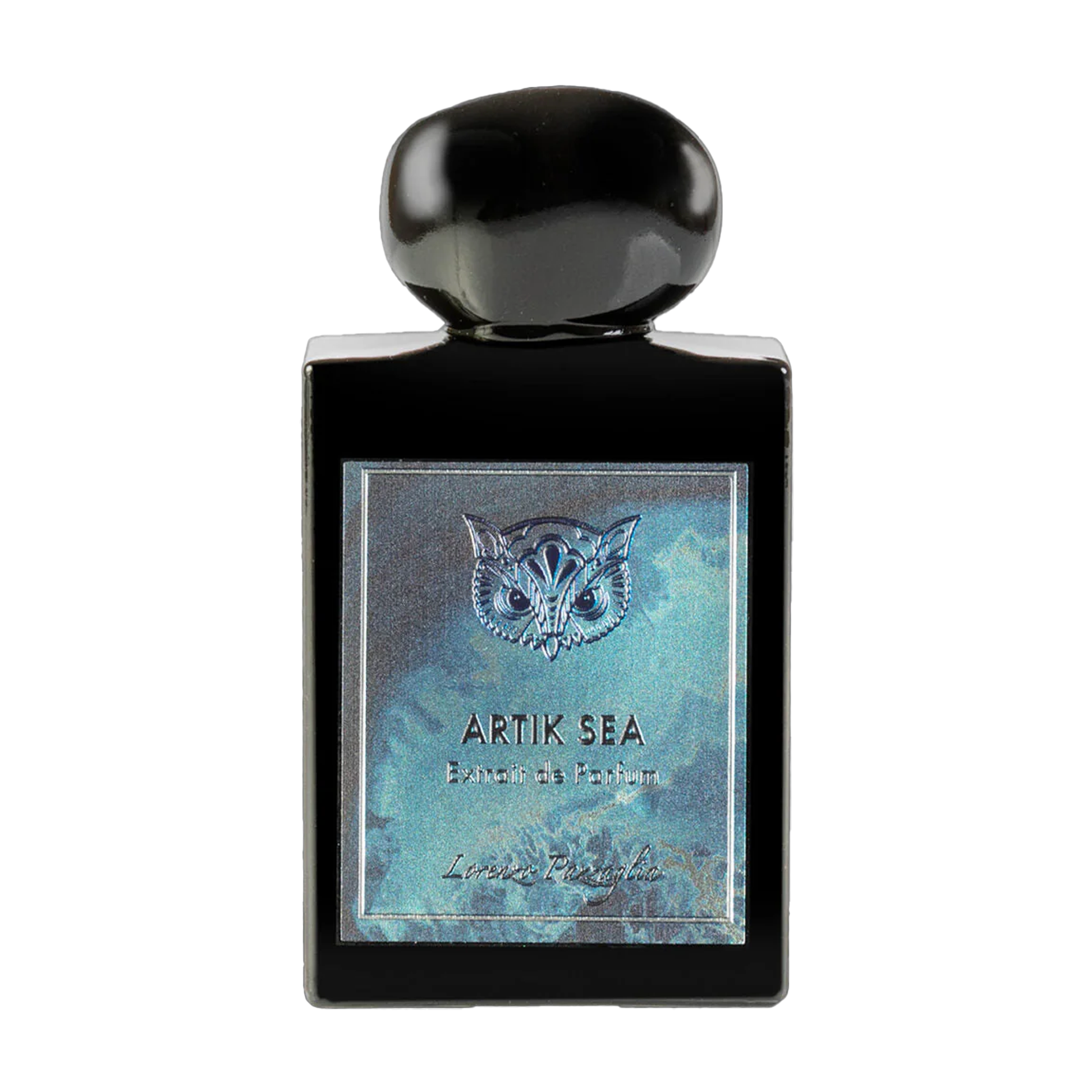 Artik Sea is a bold marine fragrance inspired by the frozen Arctic waters. It opens with sea notes, ozonic accords, wormwood, bergamot, lime, pink grapefruit, yuzu, citron, mandarin, orange blossom, pink pepper, and absinthe. The heart blends marine tones with myrtle, jasmine, fig, davana, rose, wisteria, and arctic wisteria. The base anchors with sea salt, seaweed absolute, wakame, ambergris, oakmoss, precious woods, ambrette seed, patchouli, and amber, creating an icy, salty, yet woody-ambery composition.