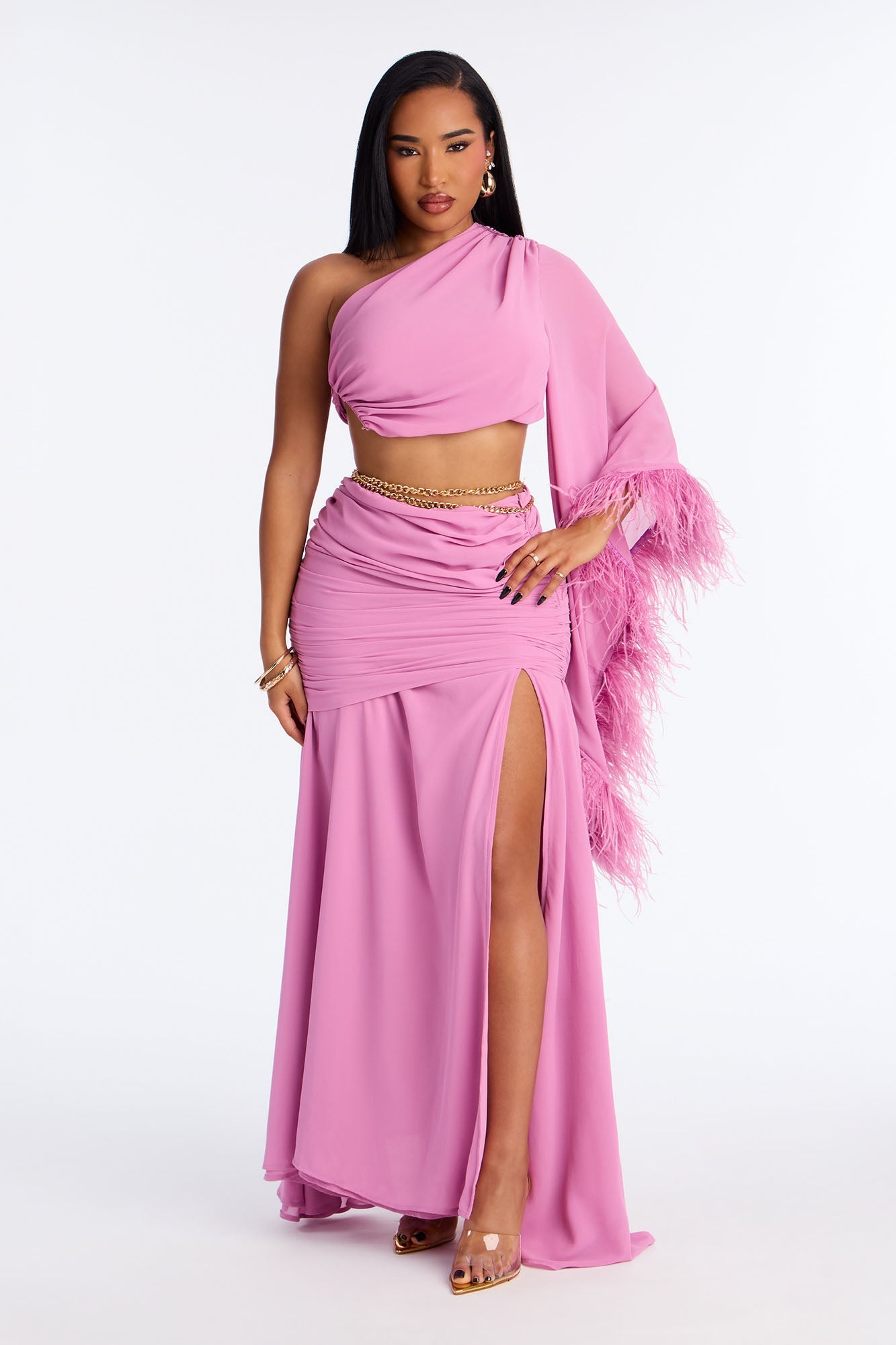 Athena Chiffon One Shoulder Maxi Skirt Set - Mauve