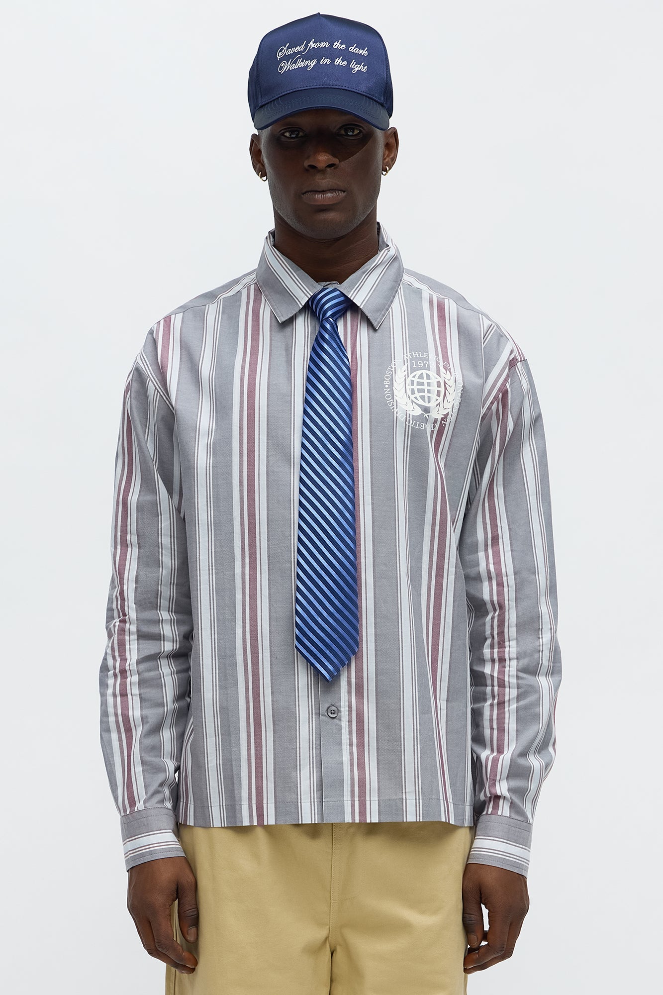 Athletic Division Long Sleeve Shirt With Tie - Grey/combo