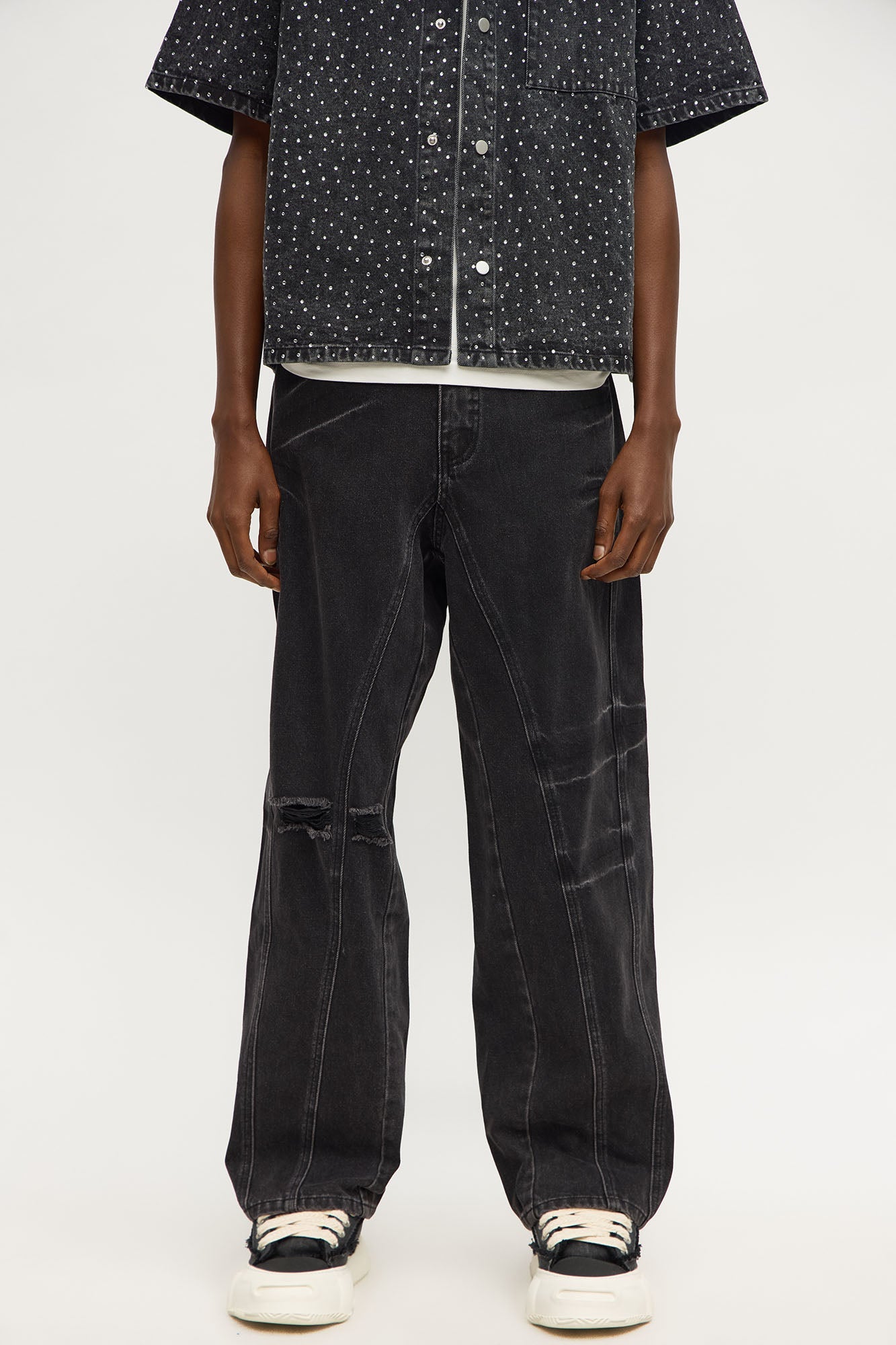 Baggy More Than One Seam Distressed Jean - Black Wash