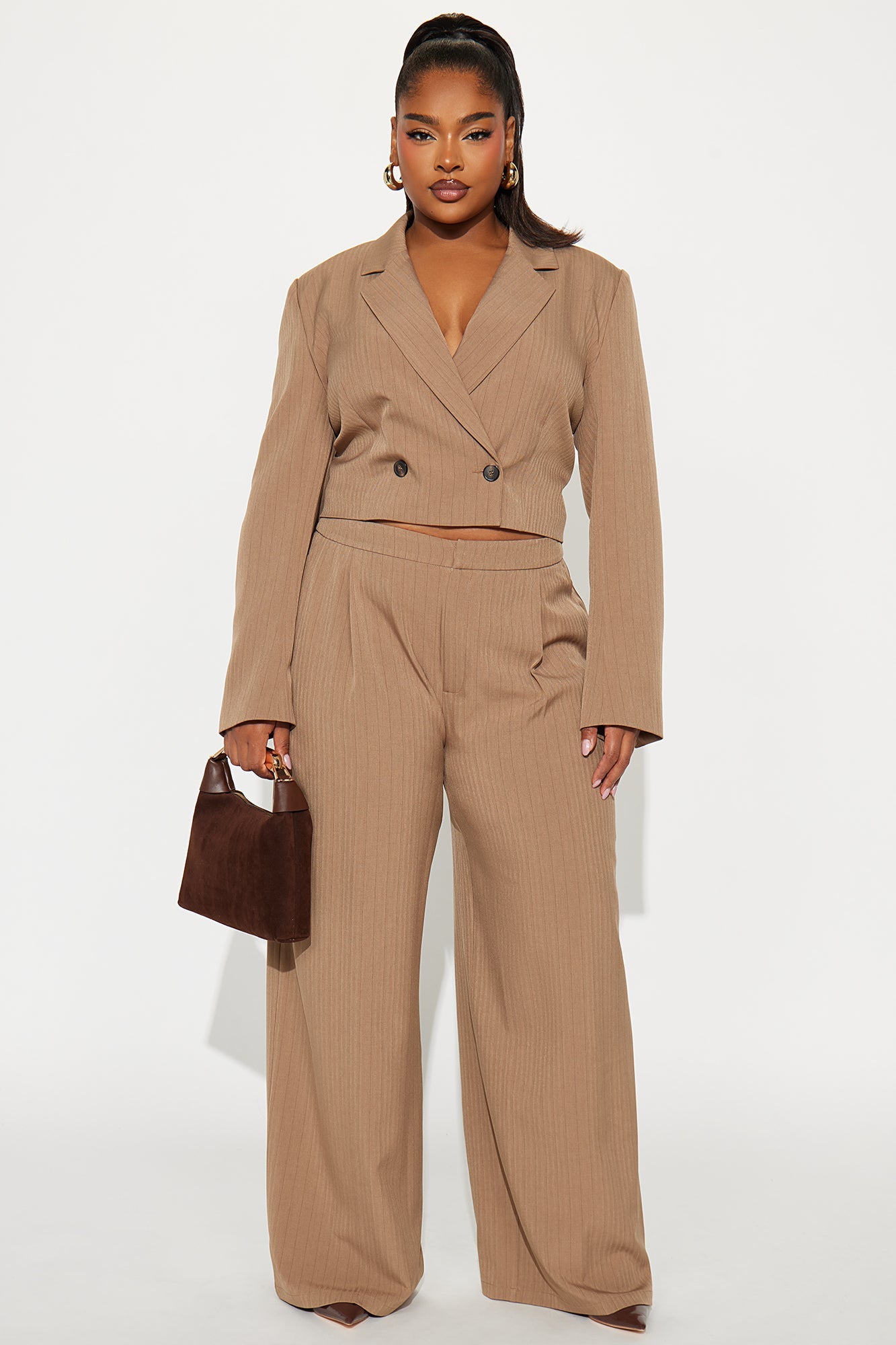 - Cropped Blazer And Wide Leg Pant Set
