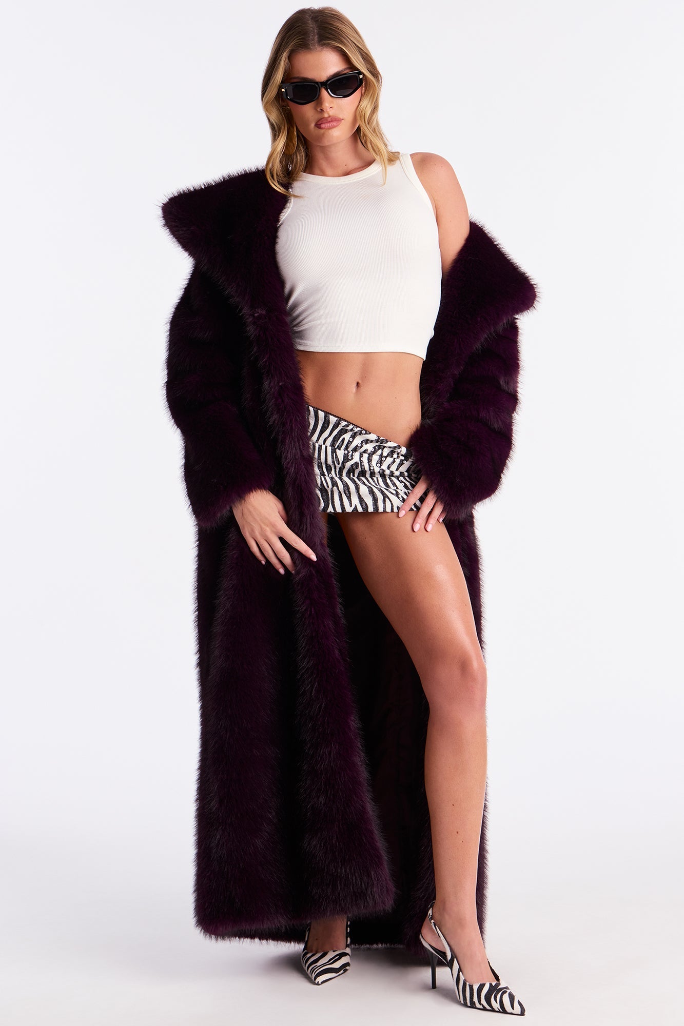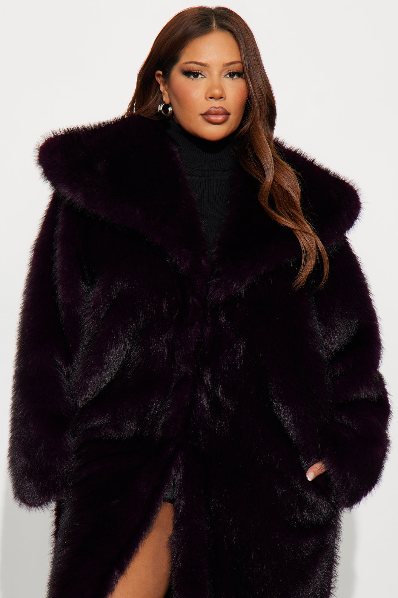 Bella Donna Two Tone Long Faux Fur Coat - Plum