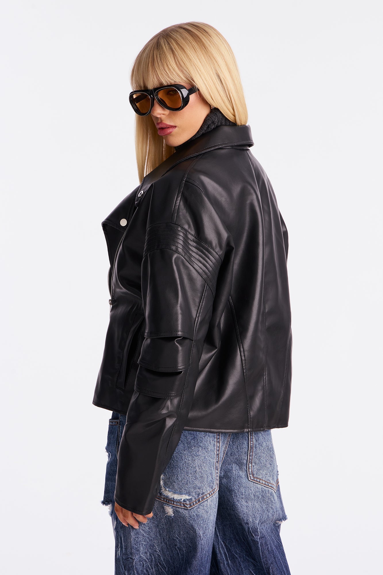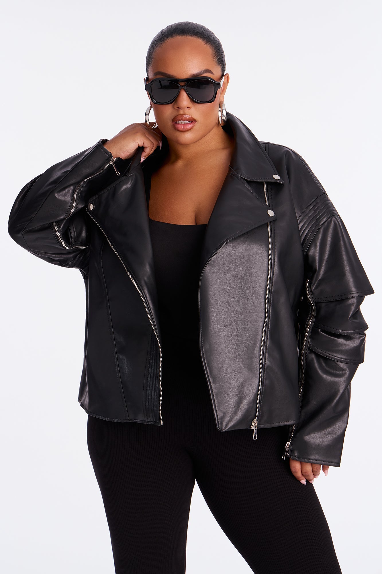 Bet On Me Oversized Faux Leather Moto Jacket - Black
