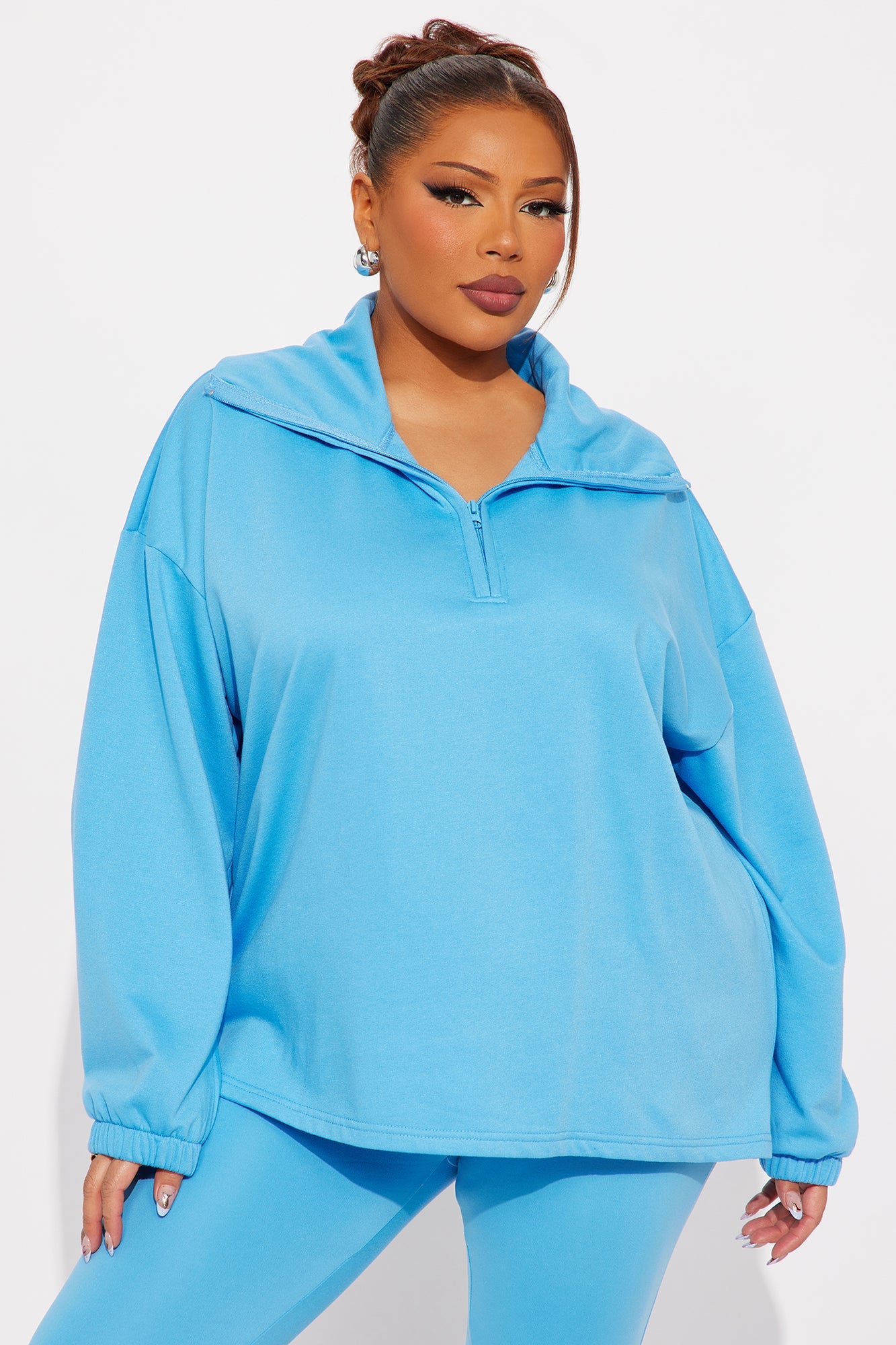 Beverly Quarter Zip Fleece Pant Set - Blue