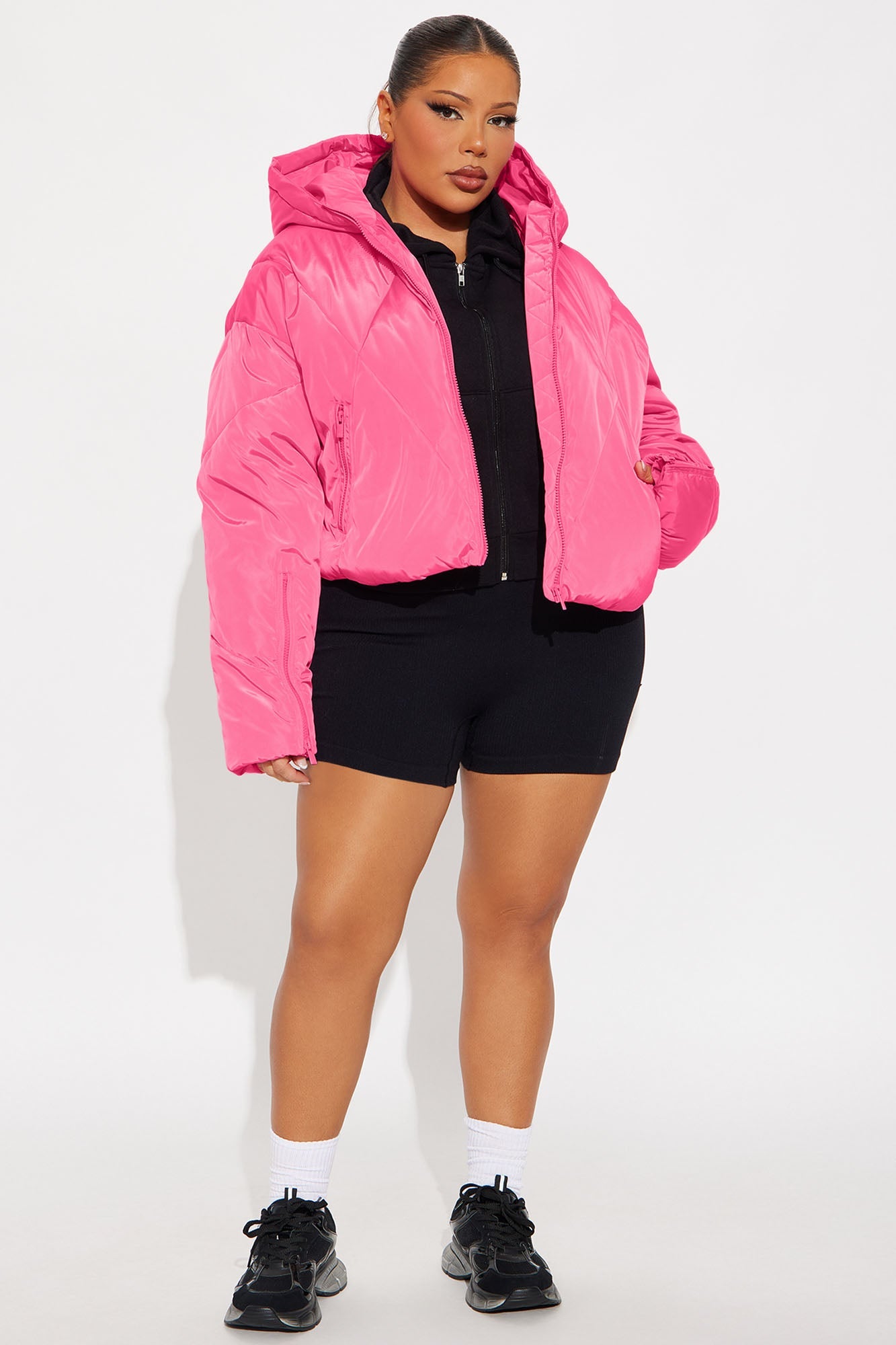 Biggest Fan Cropped Puffer Jacket - Hot Pink