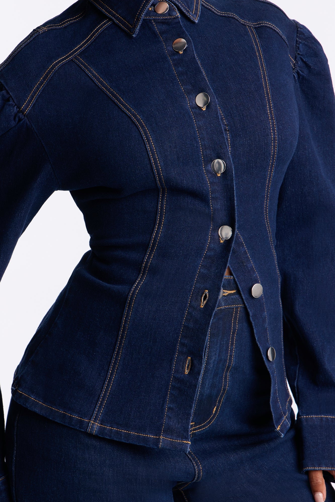 Bold Moves Denim Wide Leg Pant Set - Dark Wash