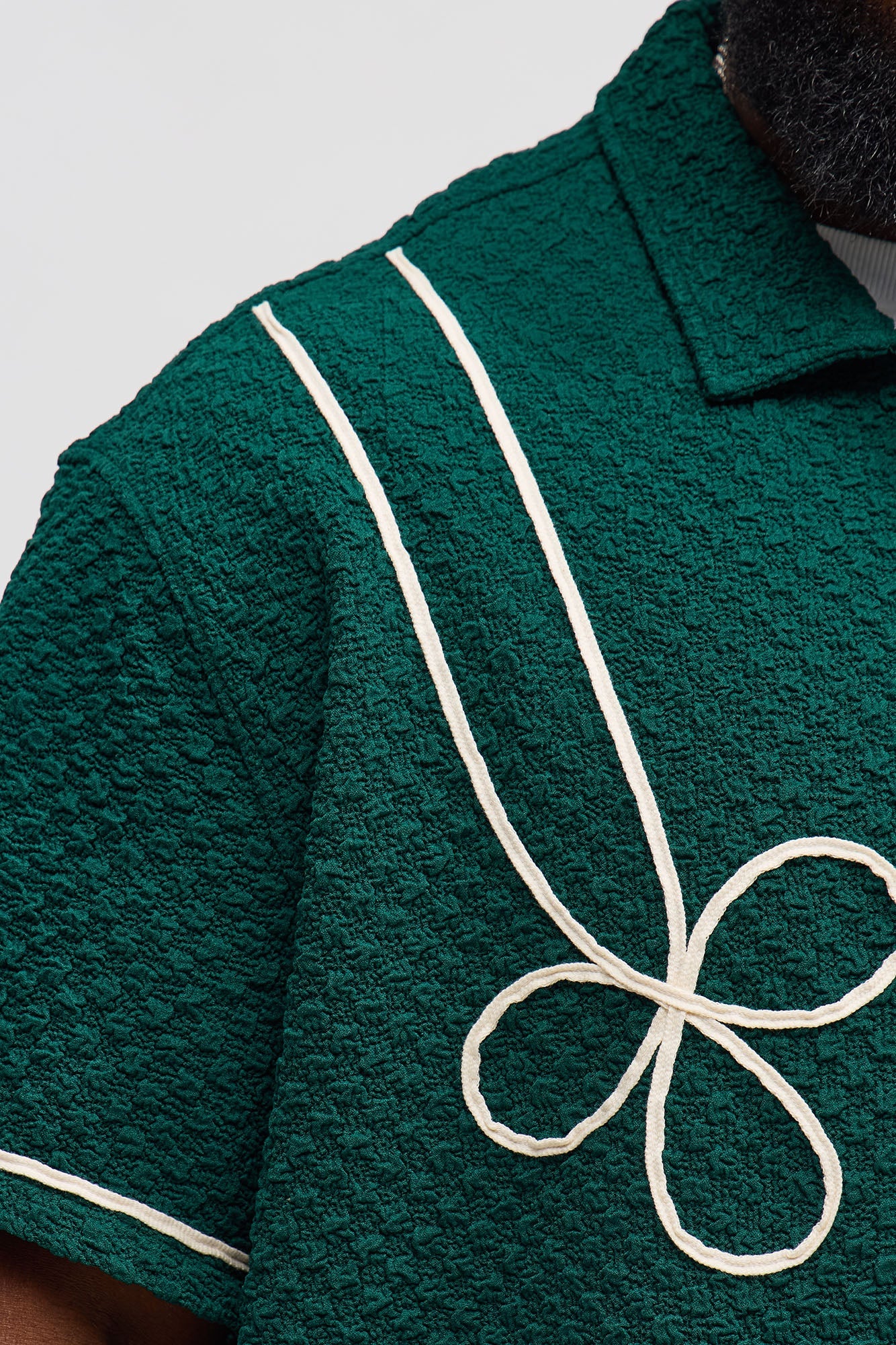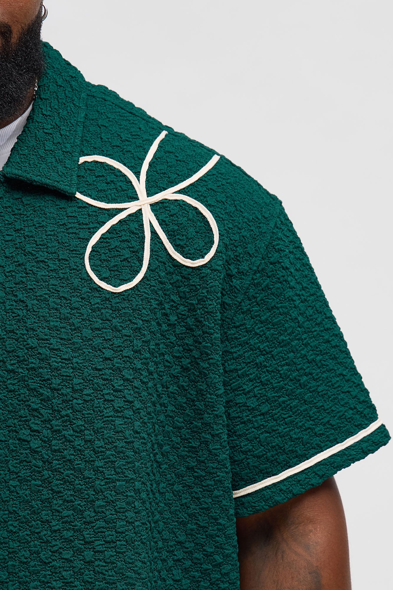 Boxy Soho Weave Applique Textured Button Up Shirt - Hunter Green