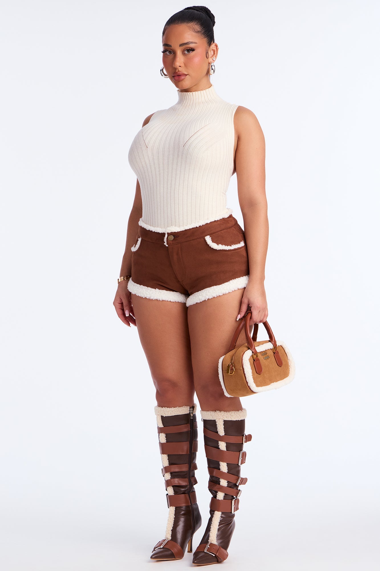 Cabin Crush Faux Suede Sherpa Micro Short - Dark Brown