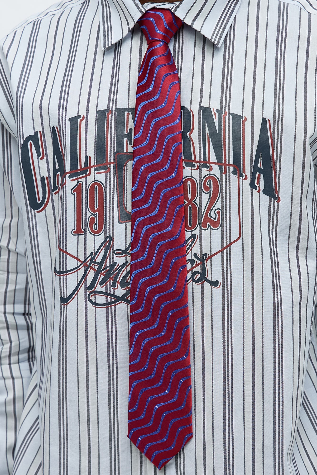 California 1932 Long Sleeve Shirt With Tie - Blue/combo