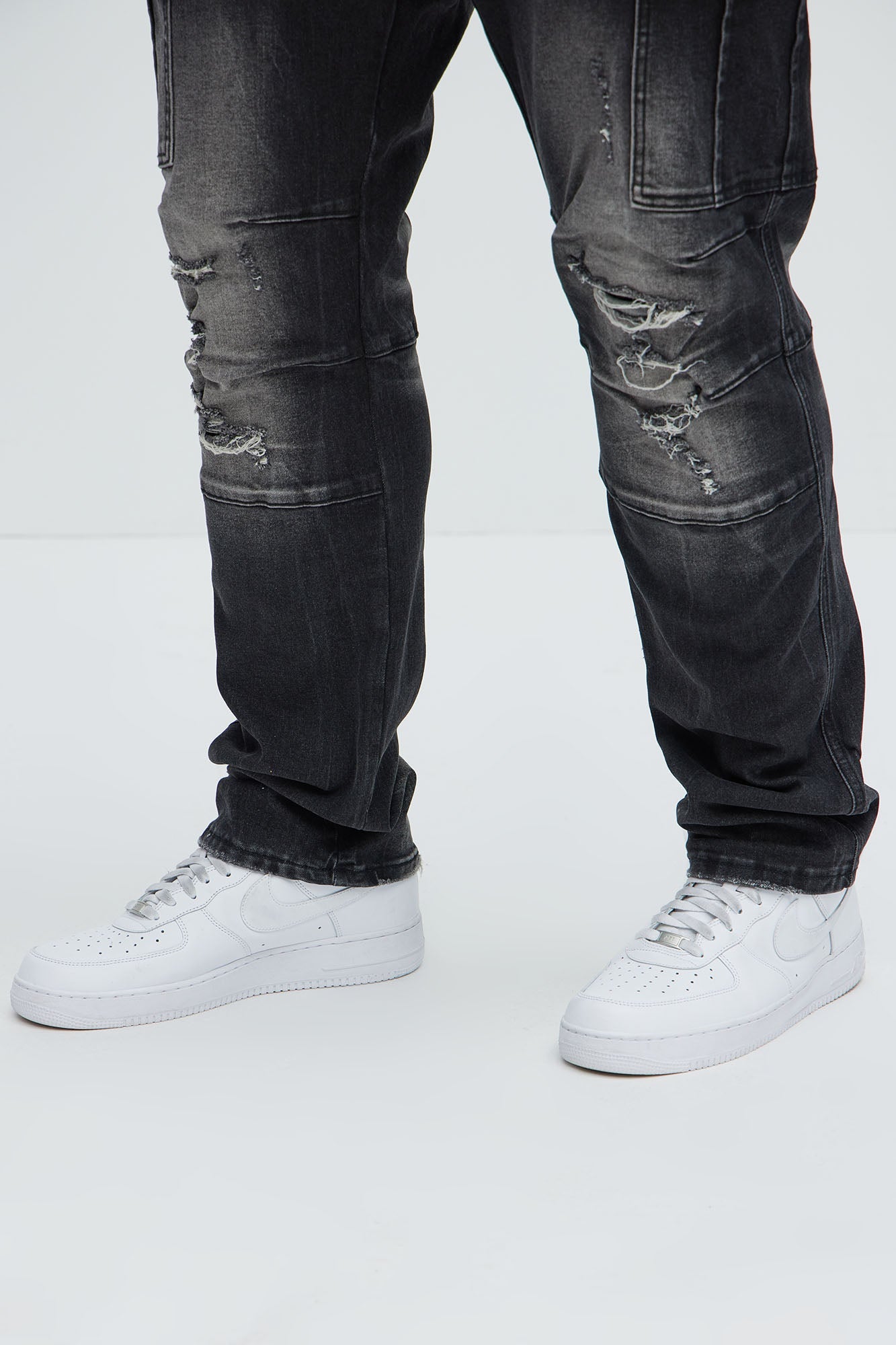 Call On Me Distressed Cargo Slim Jeans - Black Wash