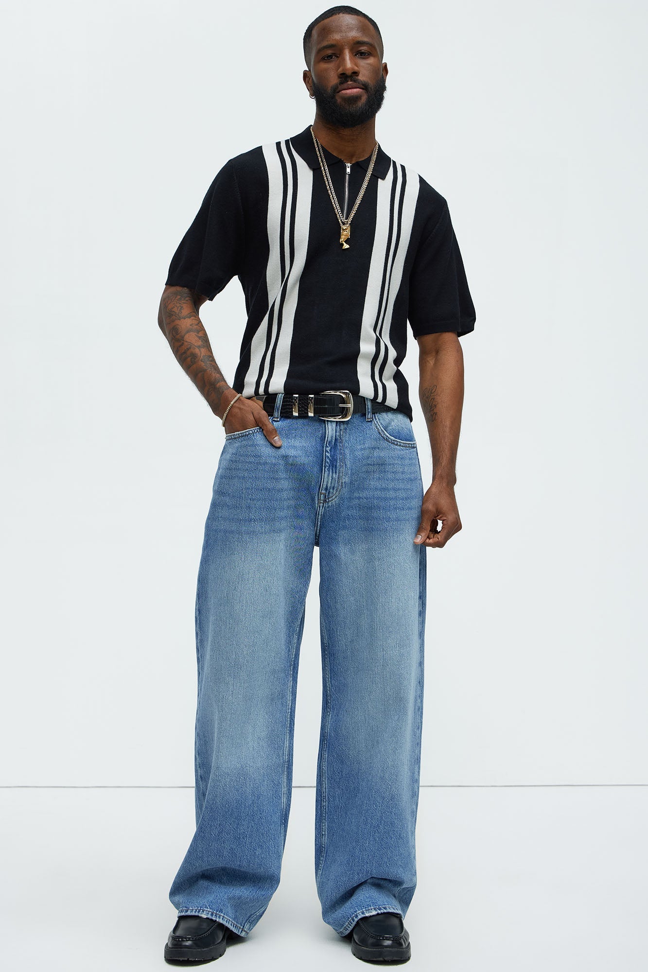 Camden Quarter Zip Sweater Polo Shirt - Black/combo