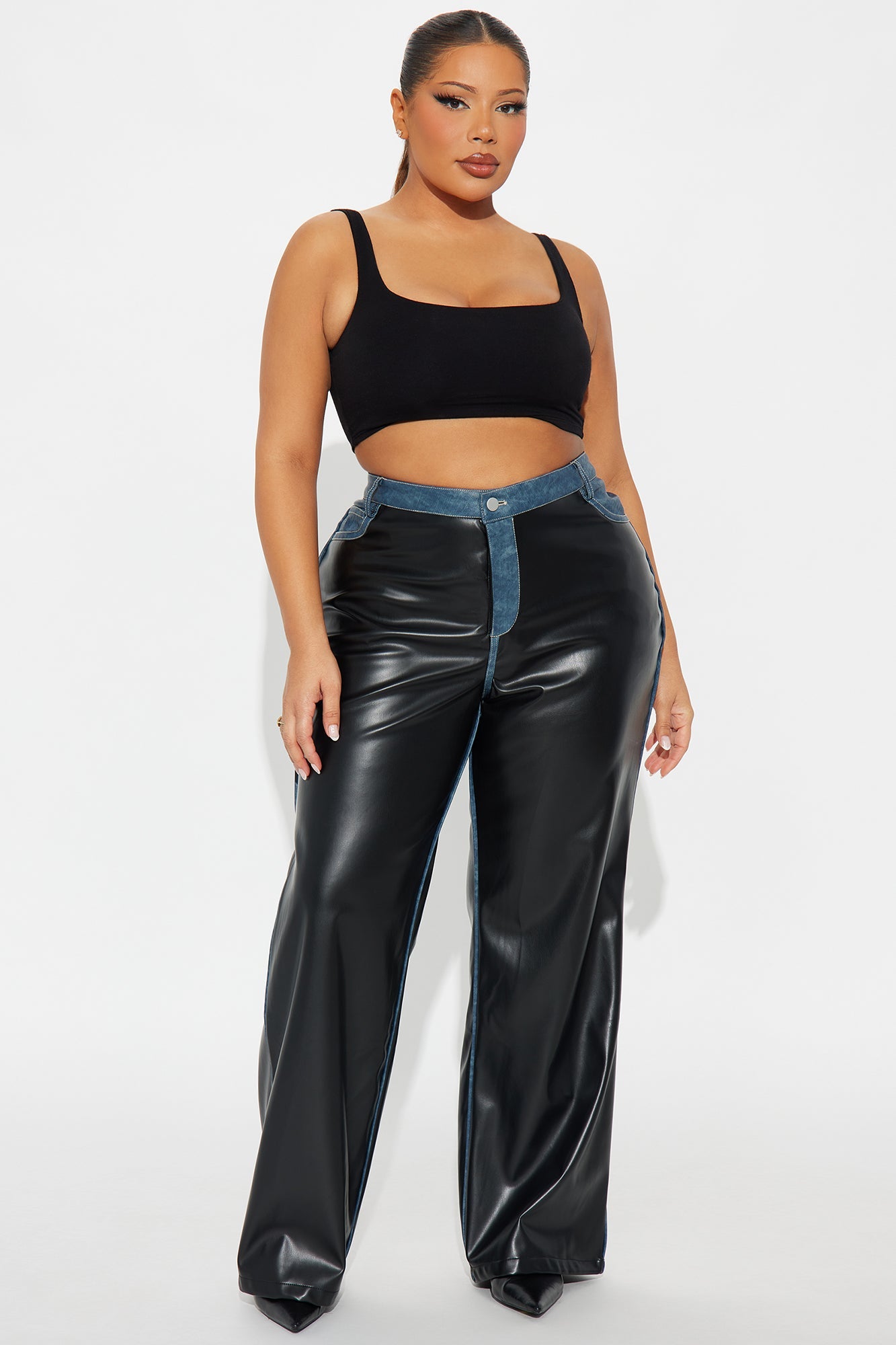 Caught In The Moment Faux Leather Trim Pant 32 - Black/combo