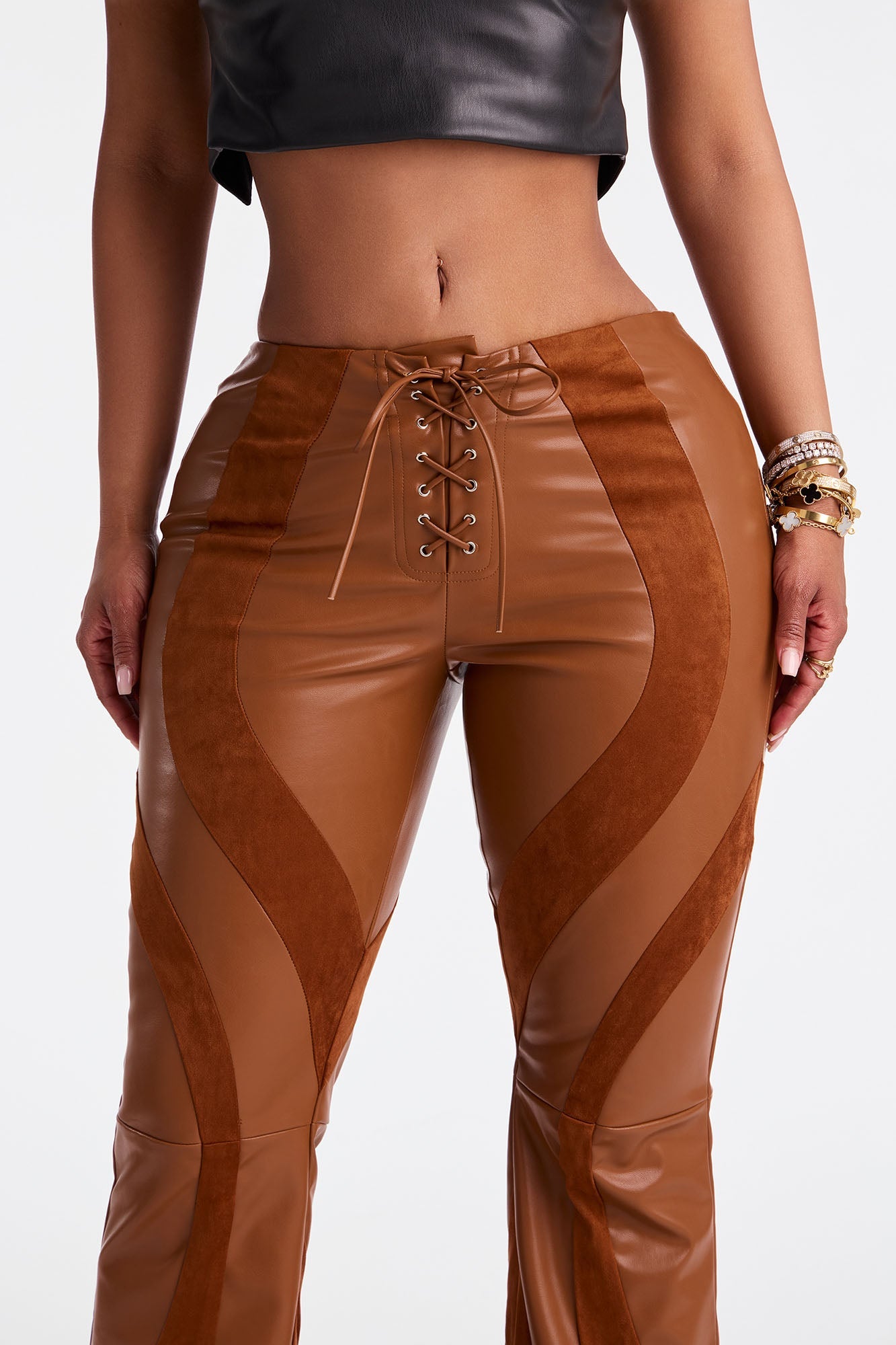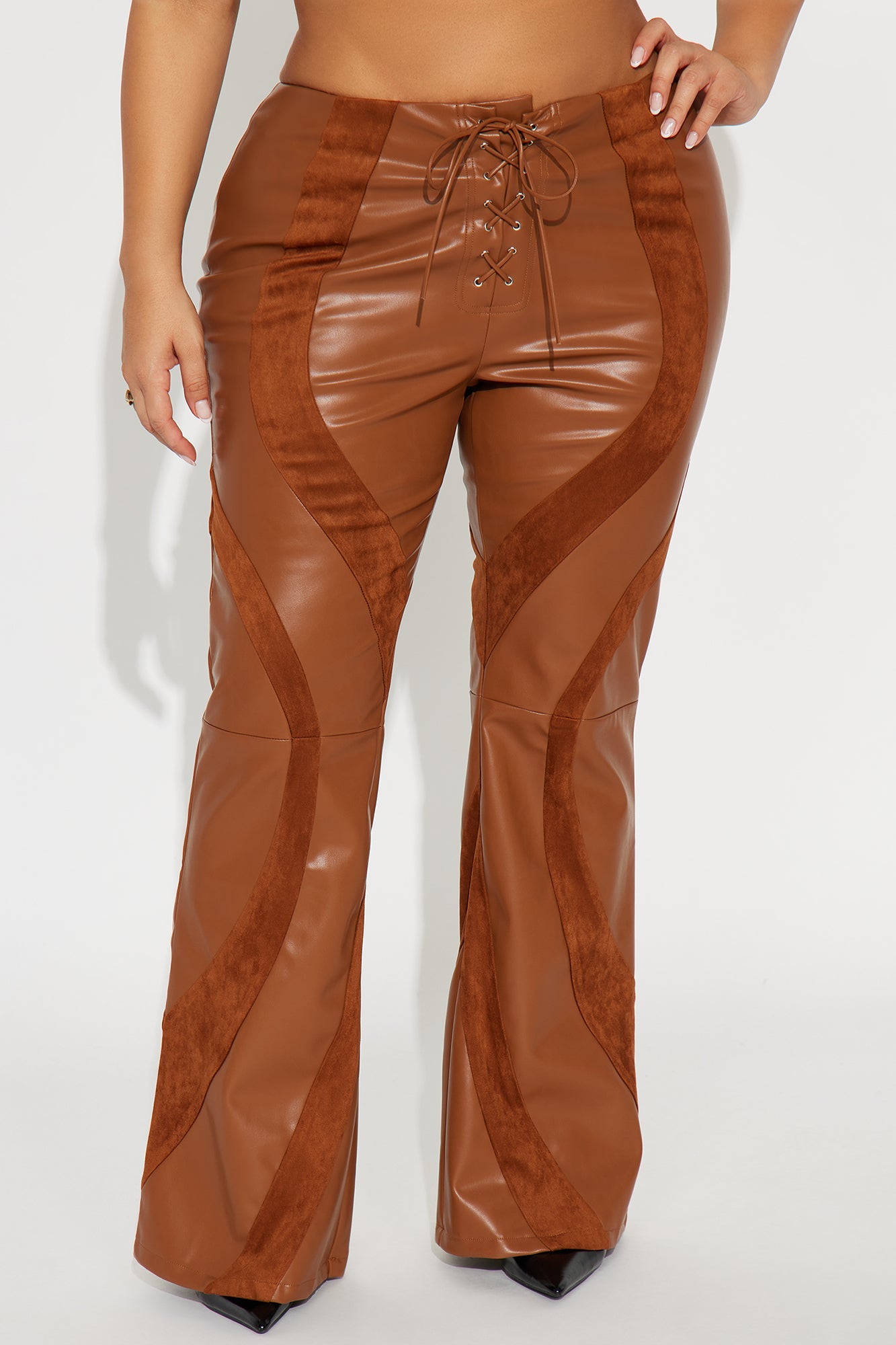 Cause A Riot Faux Leather Flare Pant 32″ - Brown