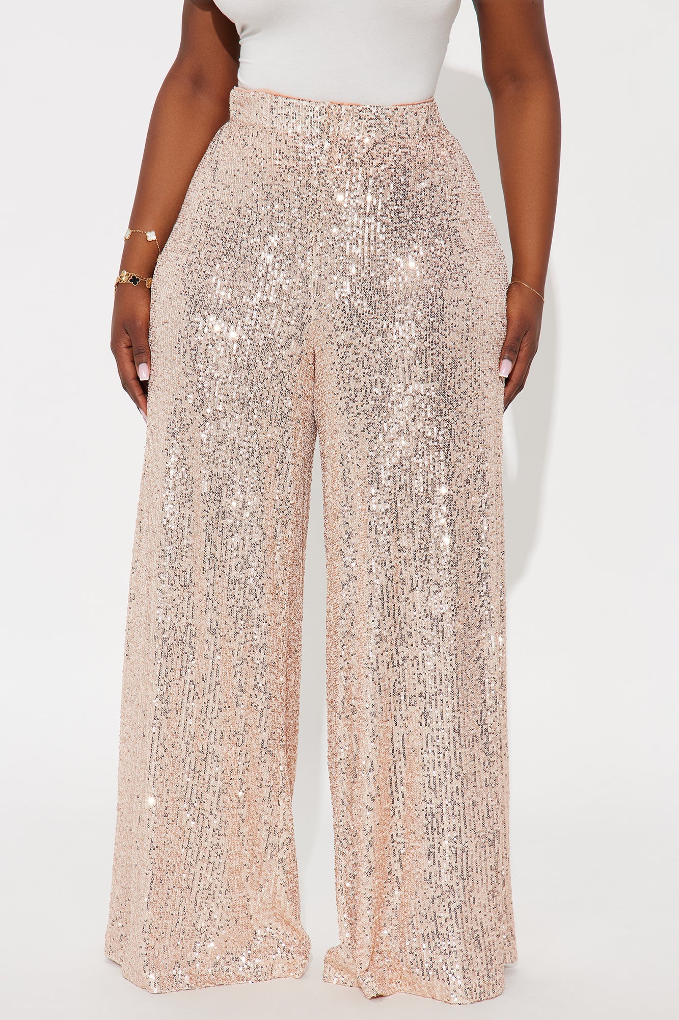 Champagne Wishes Sequin Wide Leg Pant 32″ - Rose Gold