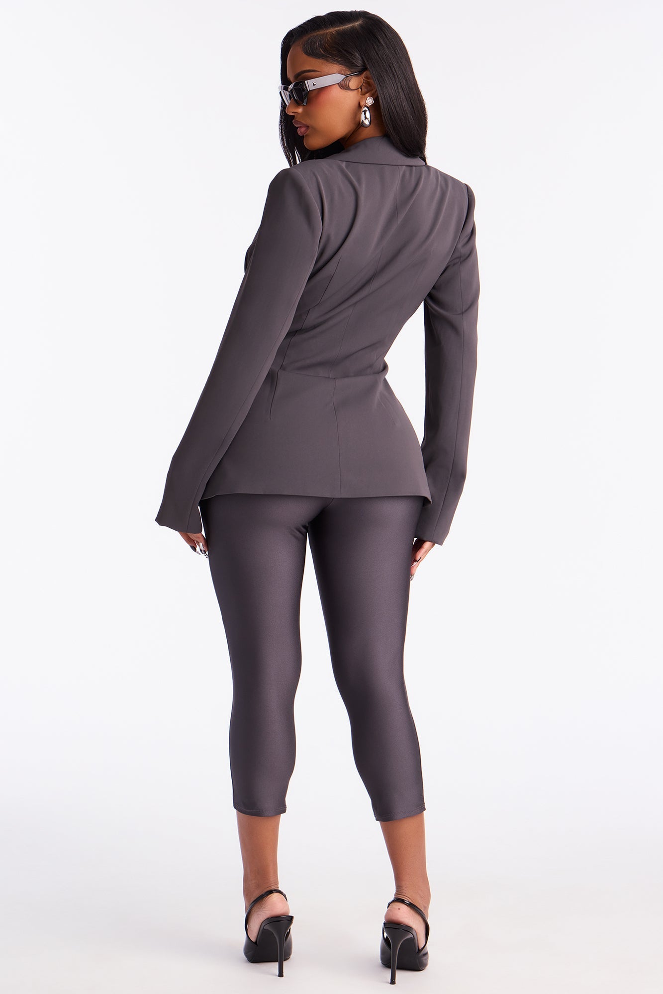 Cheyenne Crepe Woven Lace Up Blazer - Charcoal