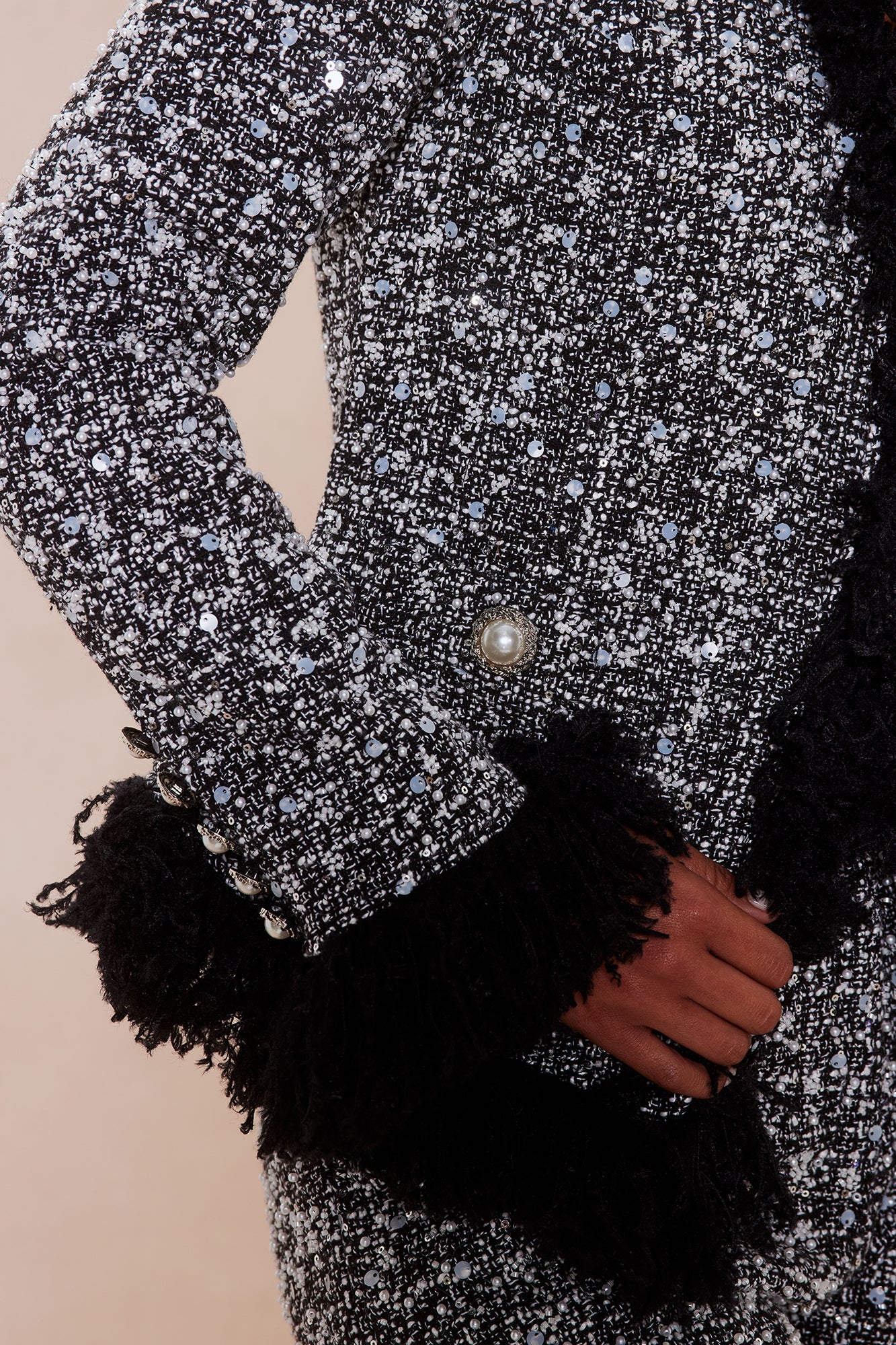 Christie Embellished Tweed Fringe Jacket - Black/White