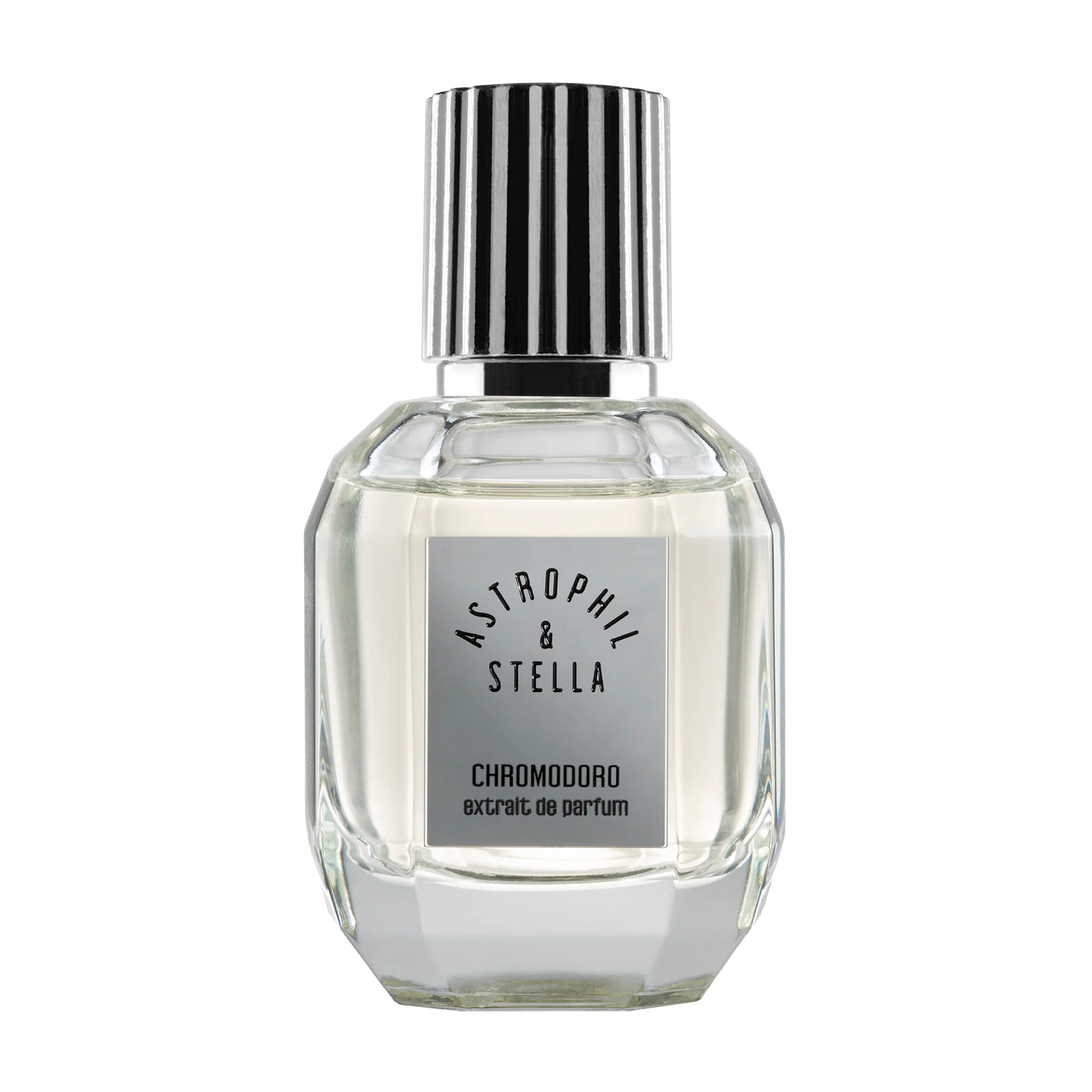 Chromodoro opens with bright basil oil, green tomato leaf, angelica root, and blackcurrant bud. The heart introduces jasmine absolute, gin, rum, juniper berry, and wormwood. A warm base of sandalwood, musk, and vetiver grounds this futuristic aromatic-green fragrance.