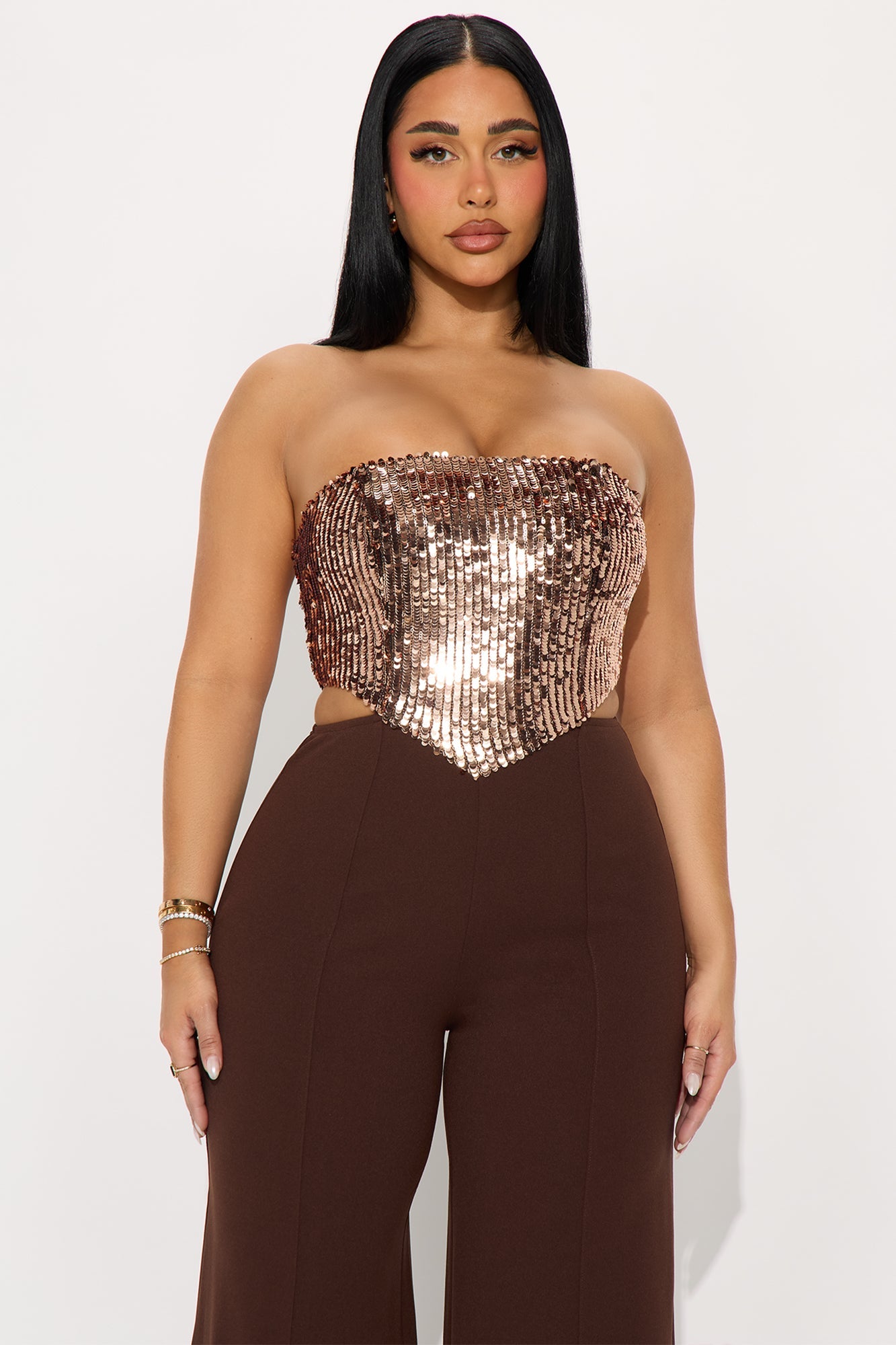 Cierra Sequin Strapless Jumpsuit - Rose Gold