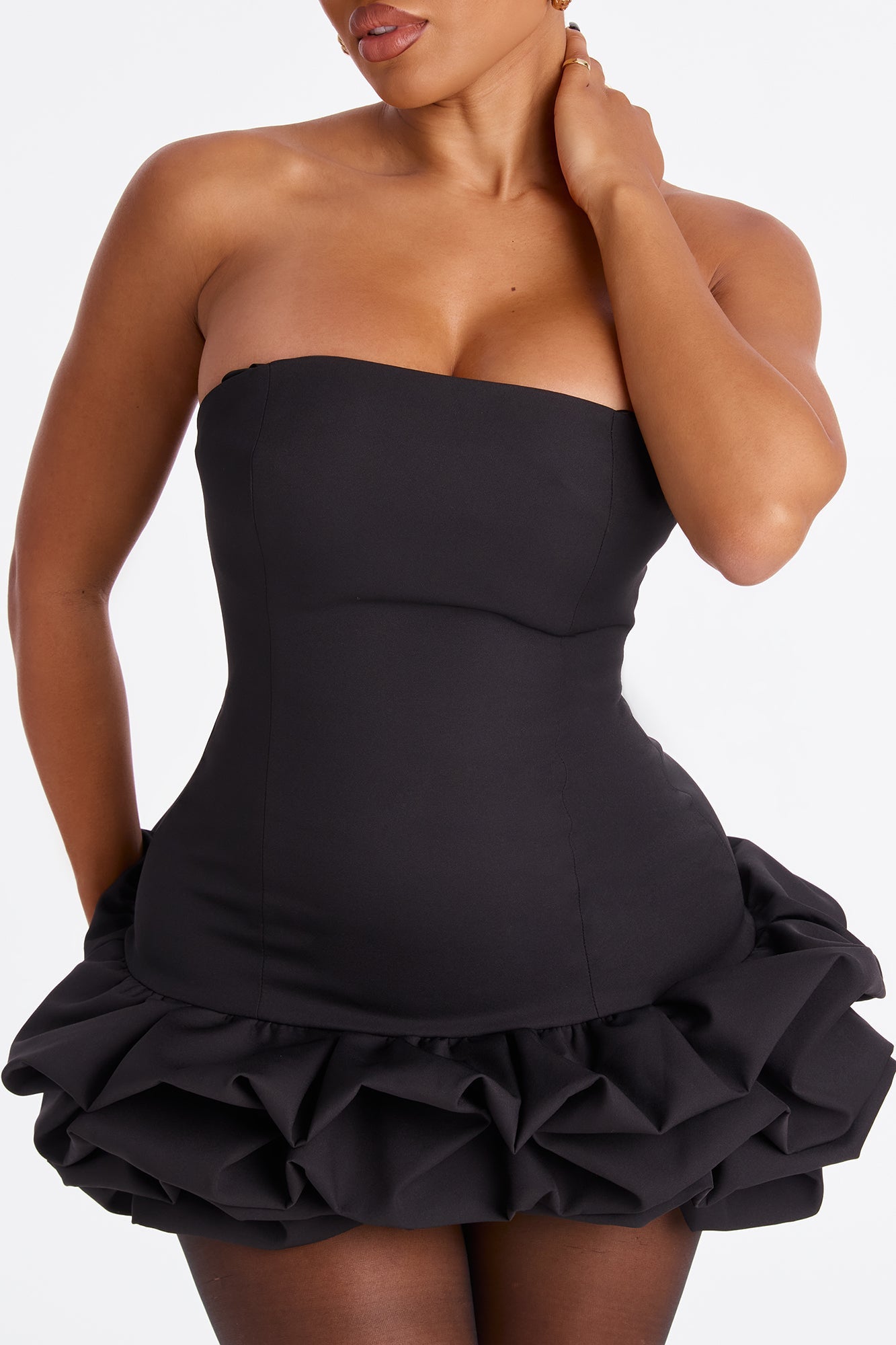 Cierra Strapless Bubble Mini Dress - Black