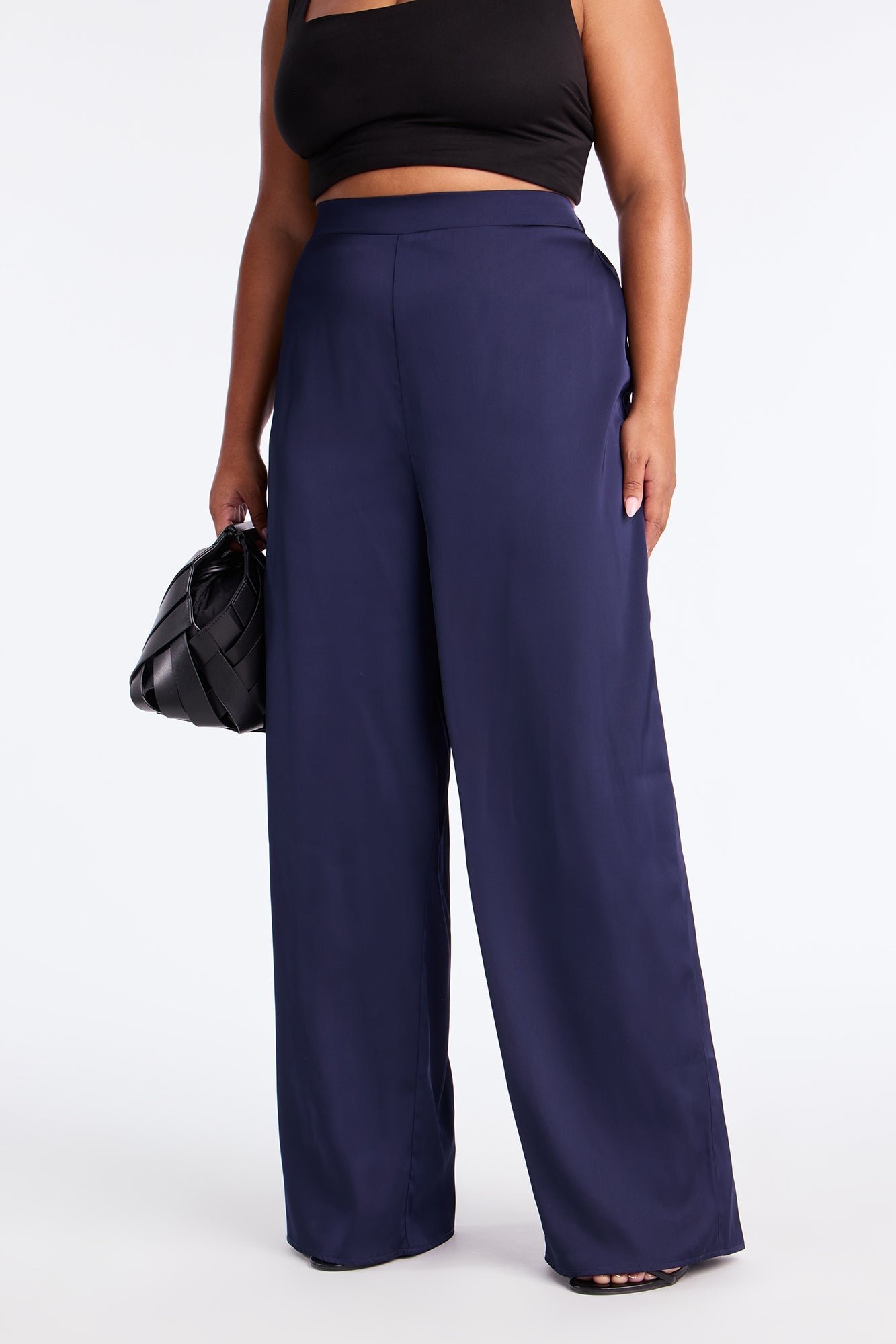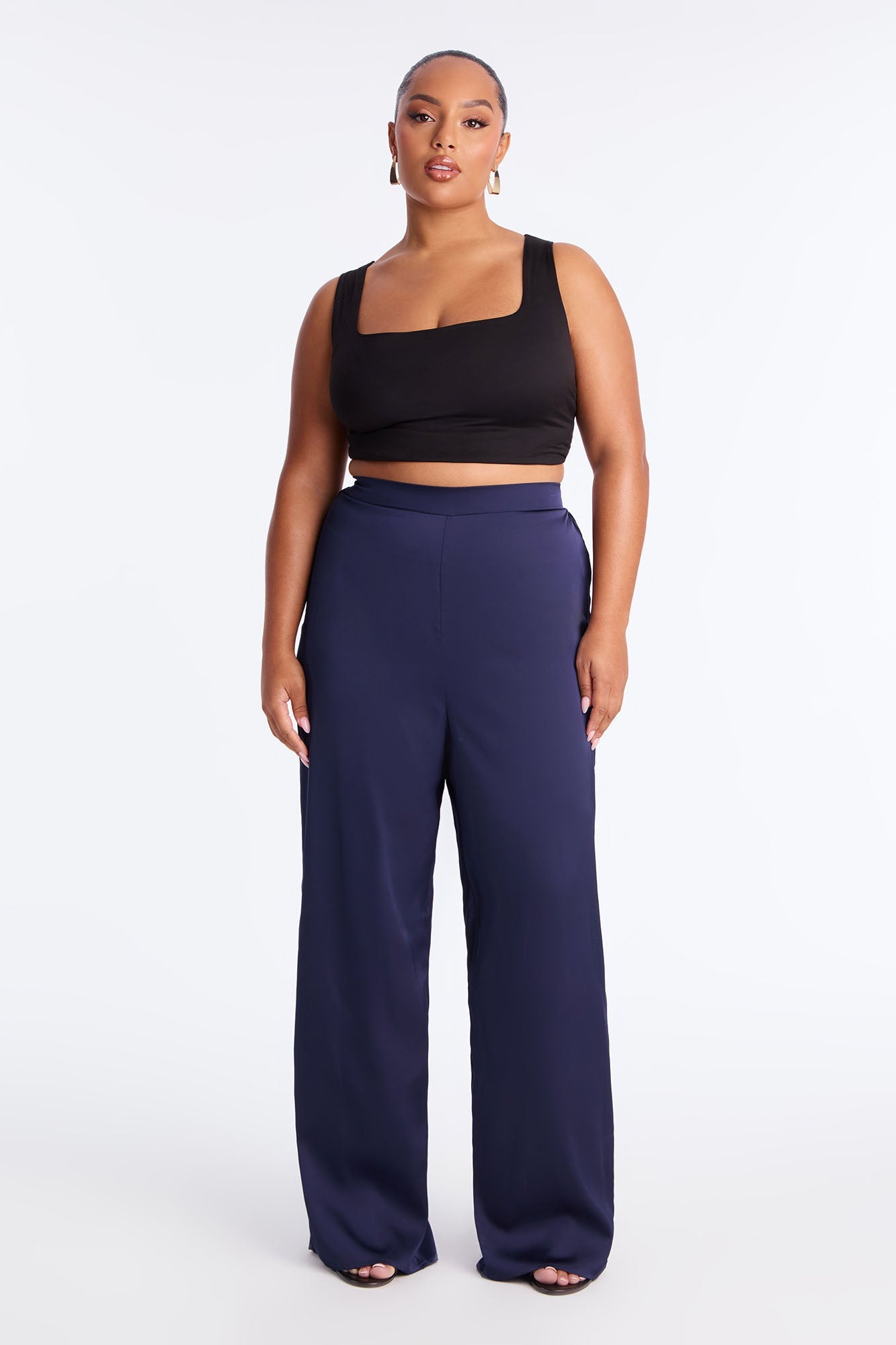 Claudia Satin Wide Leg Pant 32″ - Navy