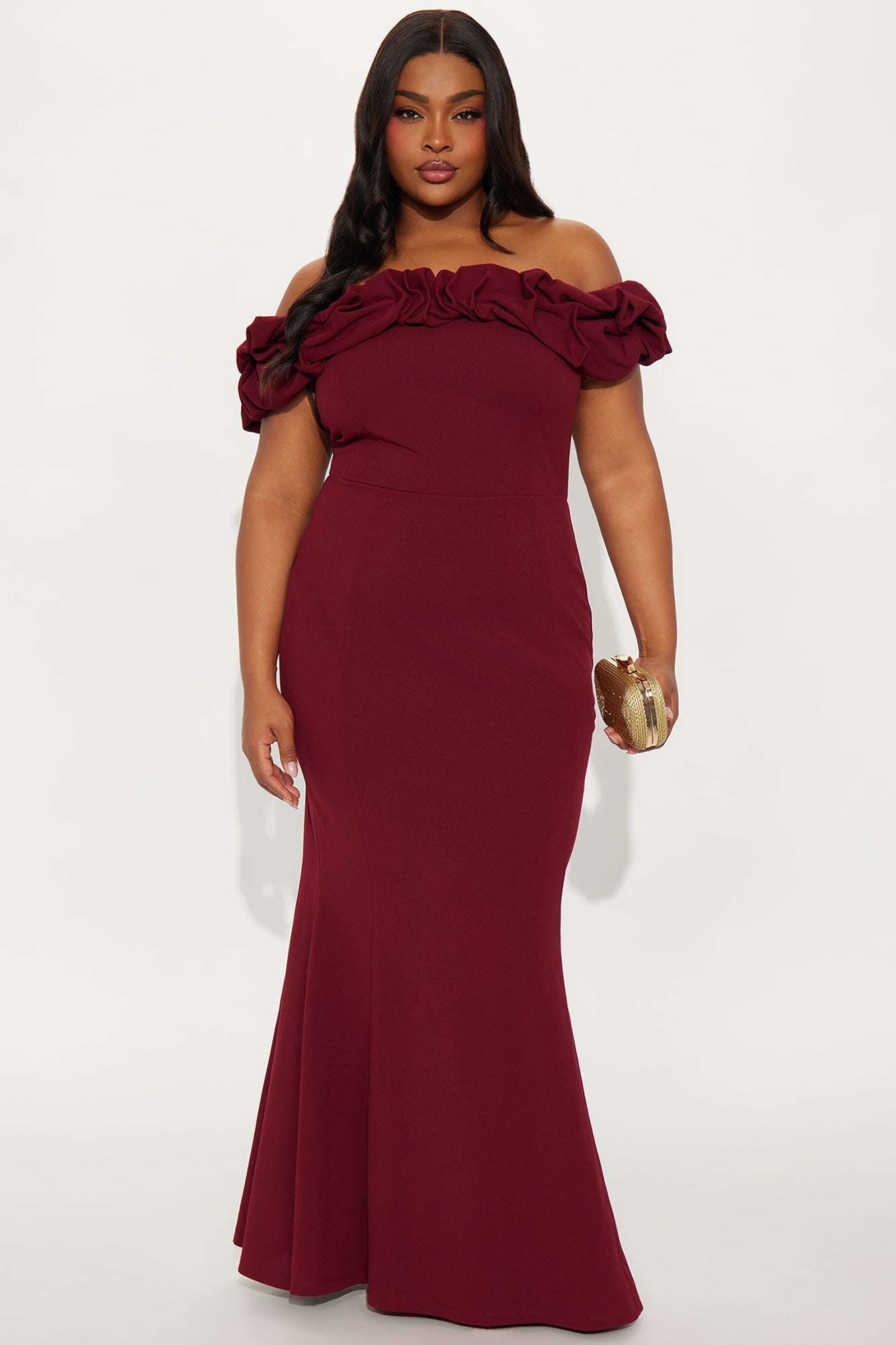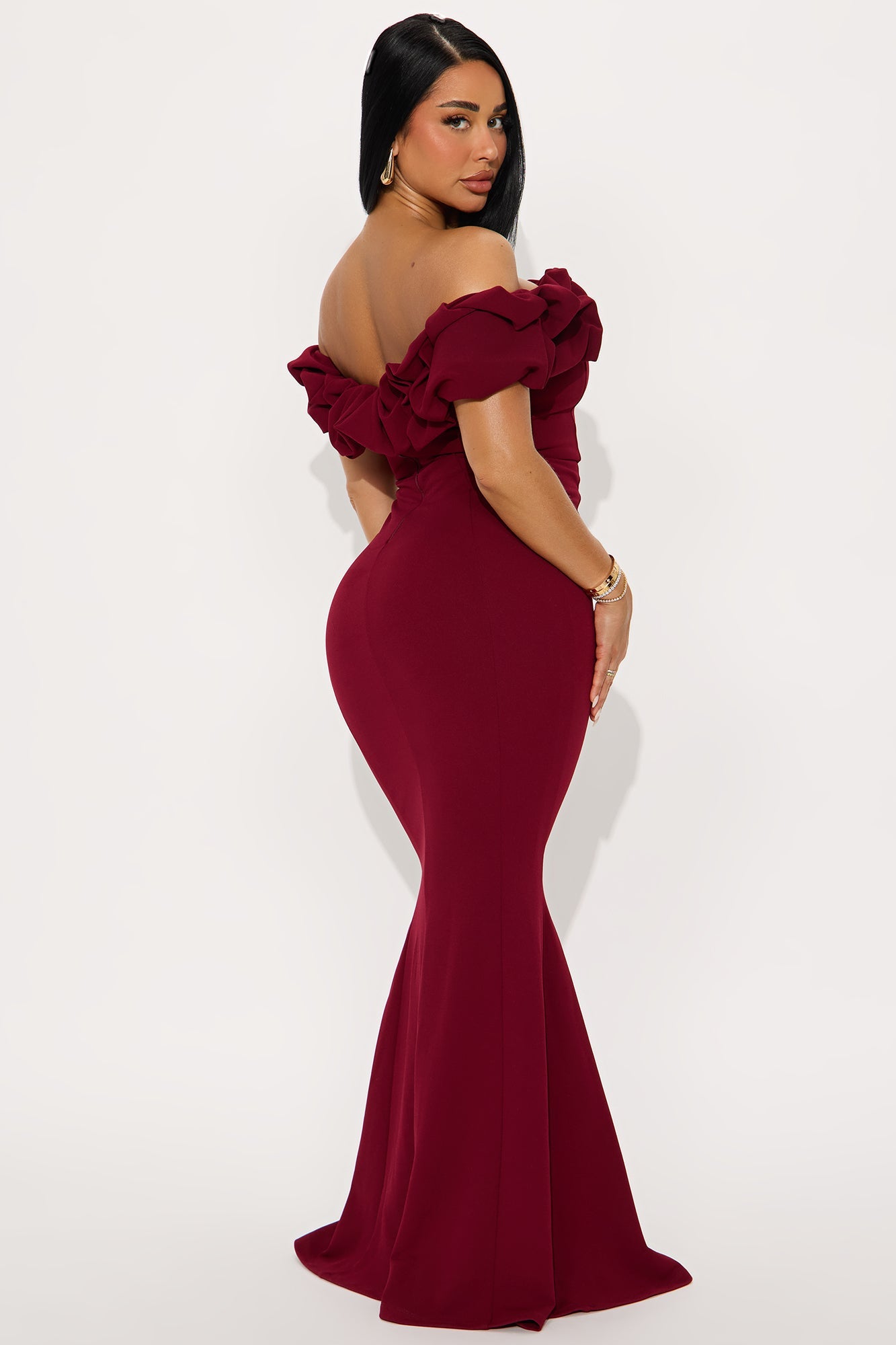 Clear Mind Ruffle Maxi Gown - Burgundy