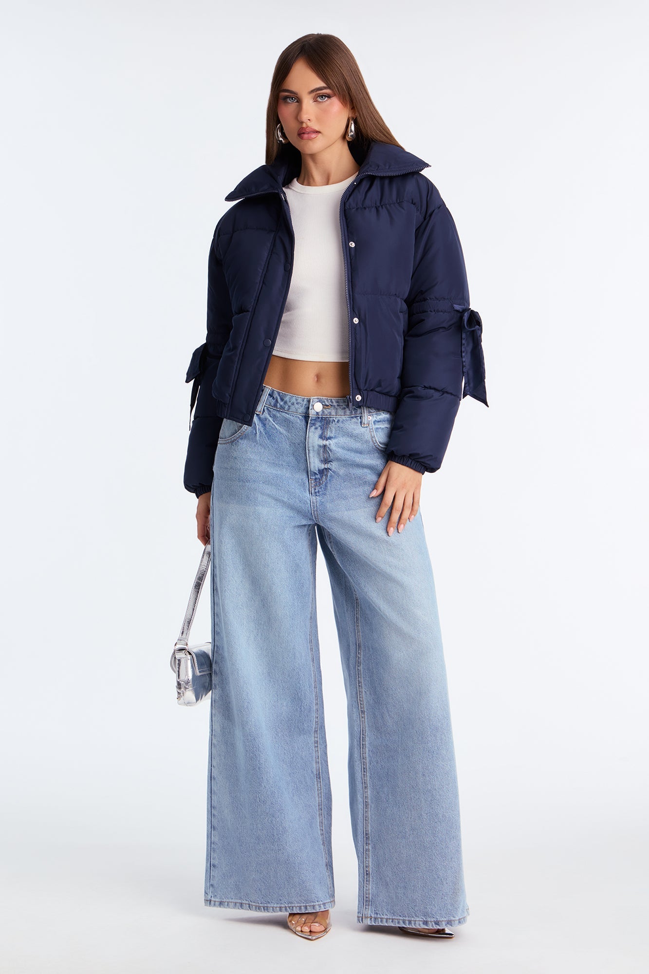 Coquette Touch Bow Puffer Jacket - Navy