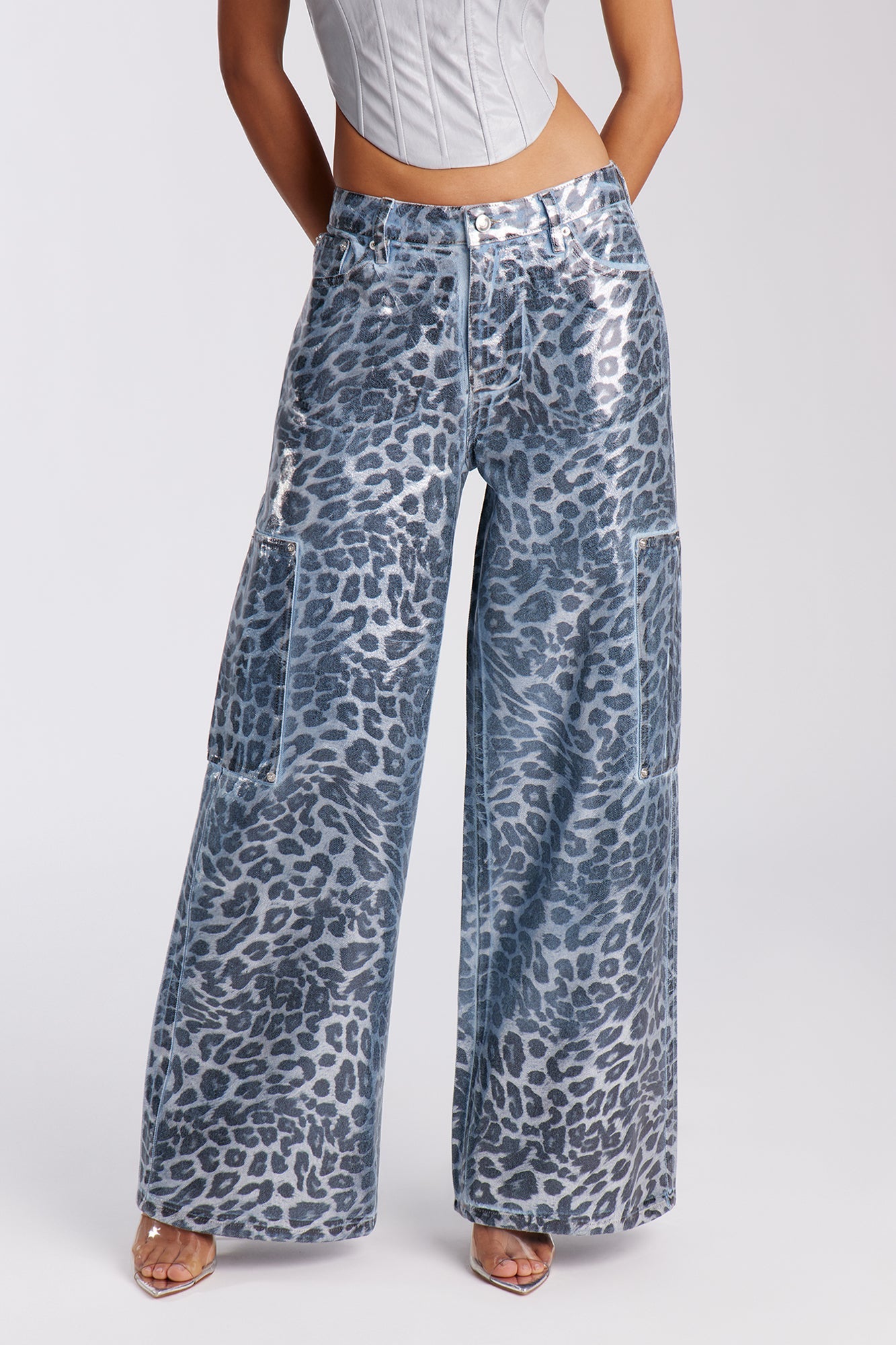 Cosmic Spots Wide Leg Denim Jeans - Light Wash