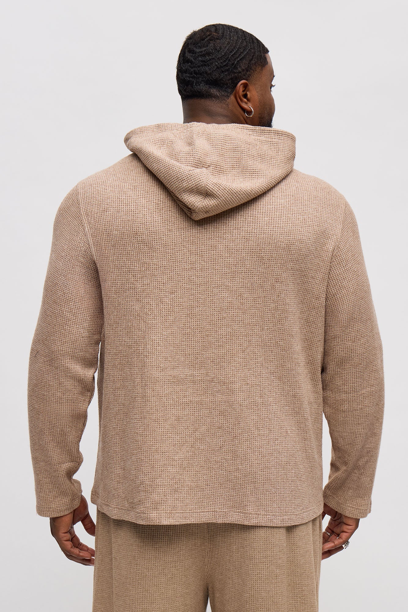 Cozy Waffle Textured Hoodie - Tan