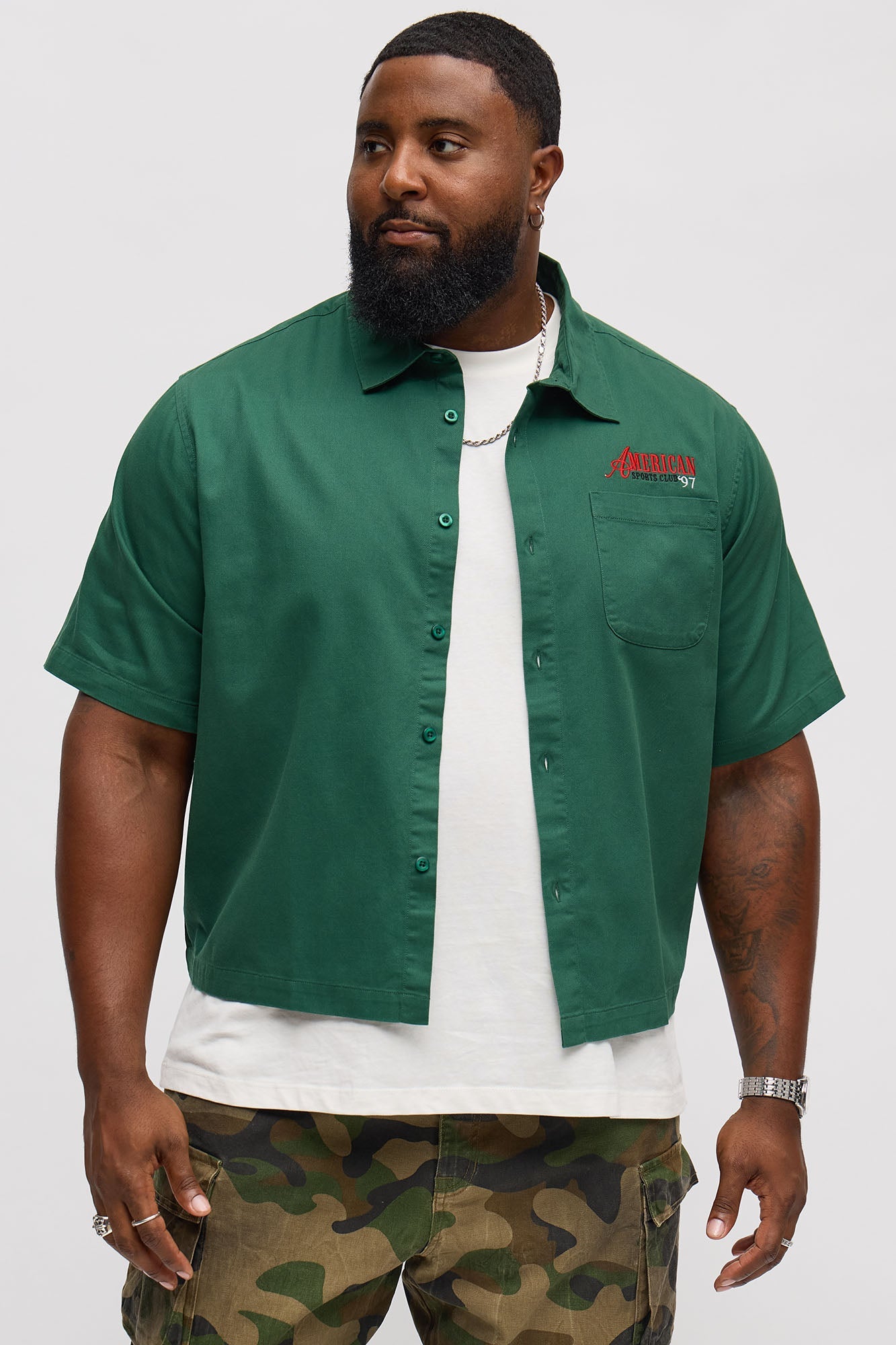 Cropped American Sports Club Mechanic Button Up Shirt - Green