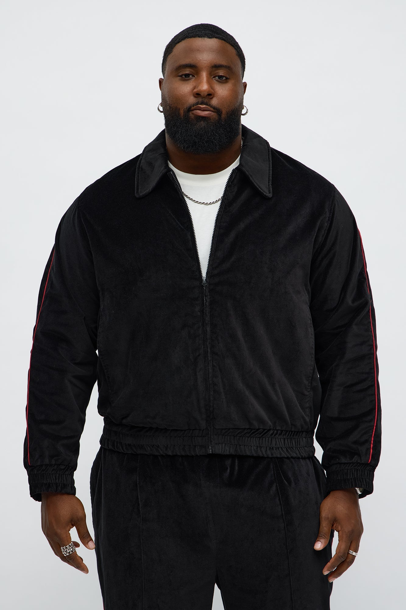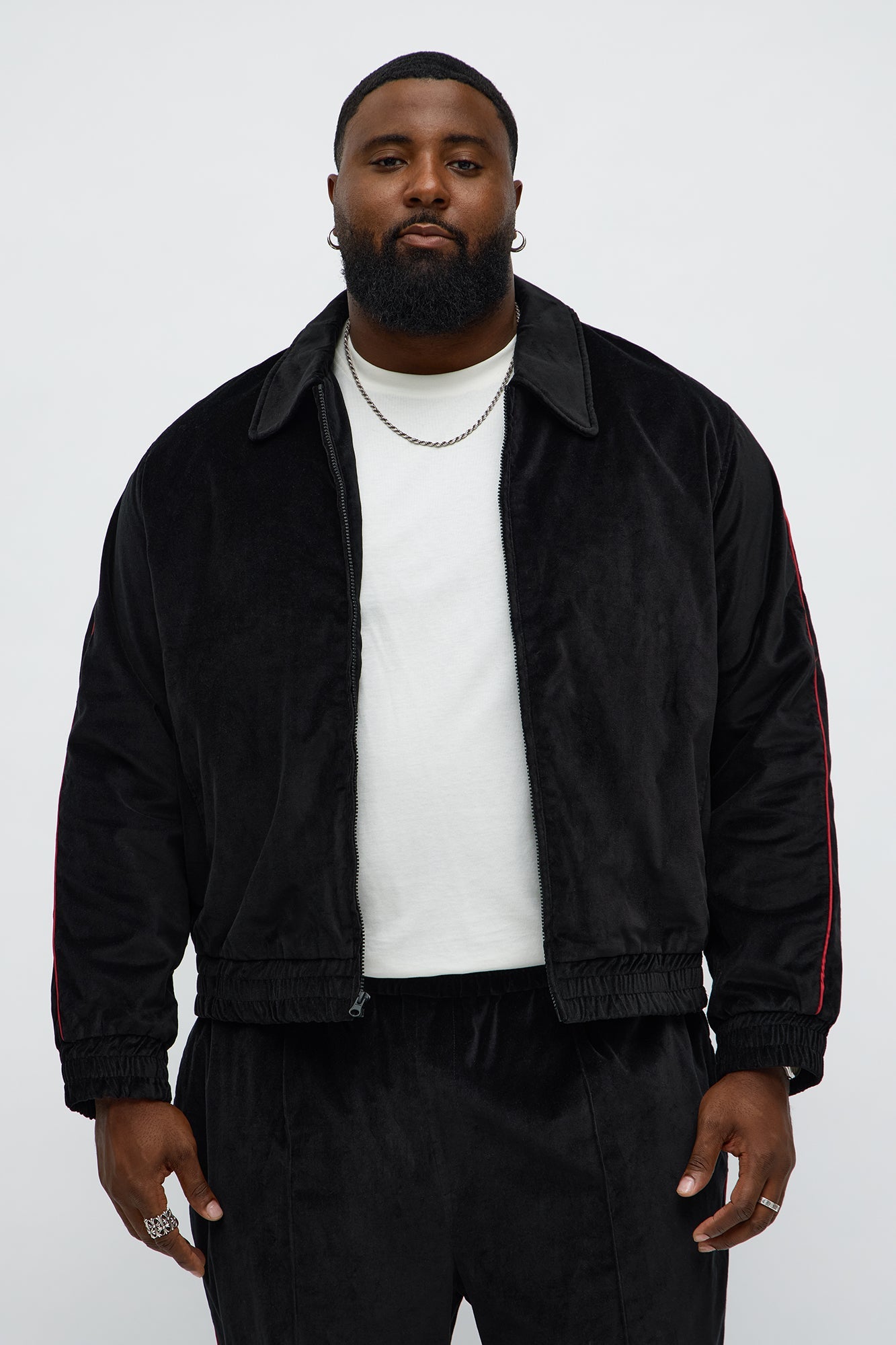 Cropped Around The Track Faux Velour Piped Zip Jacket - Black