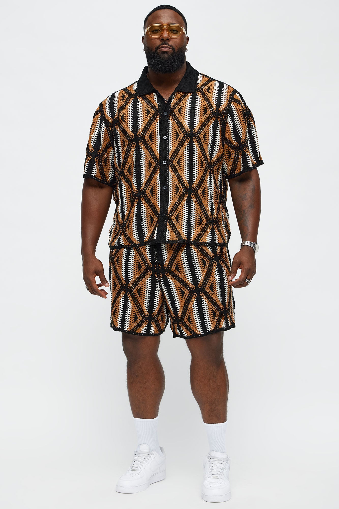 Cropped Relaxed Triangles Knit Closed Collar Shirt - Black/combo
