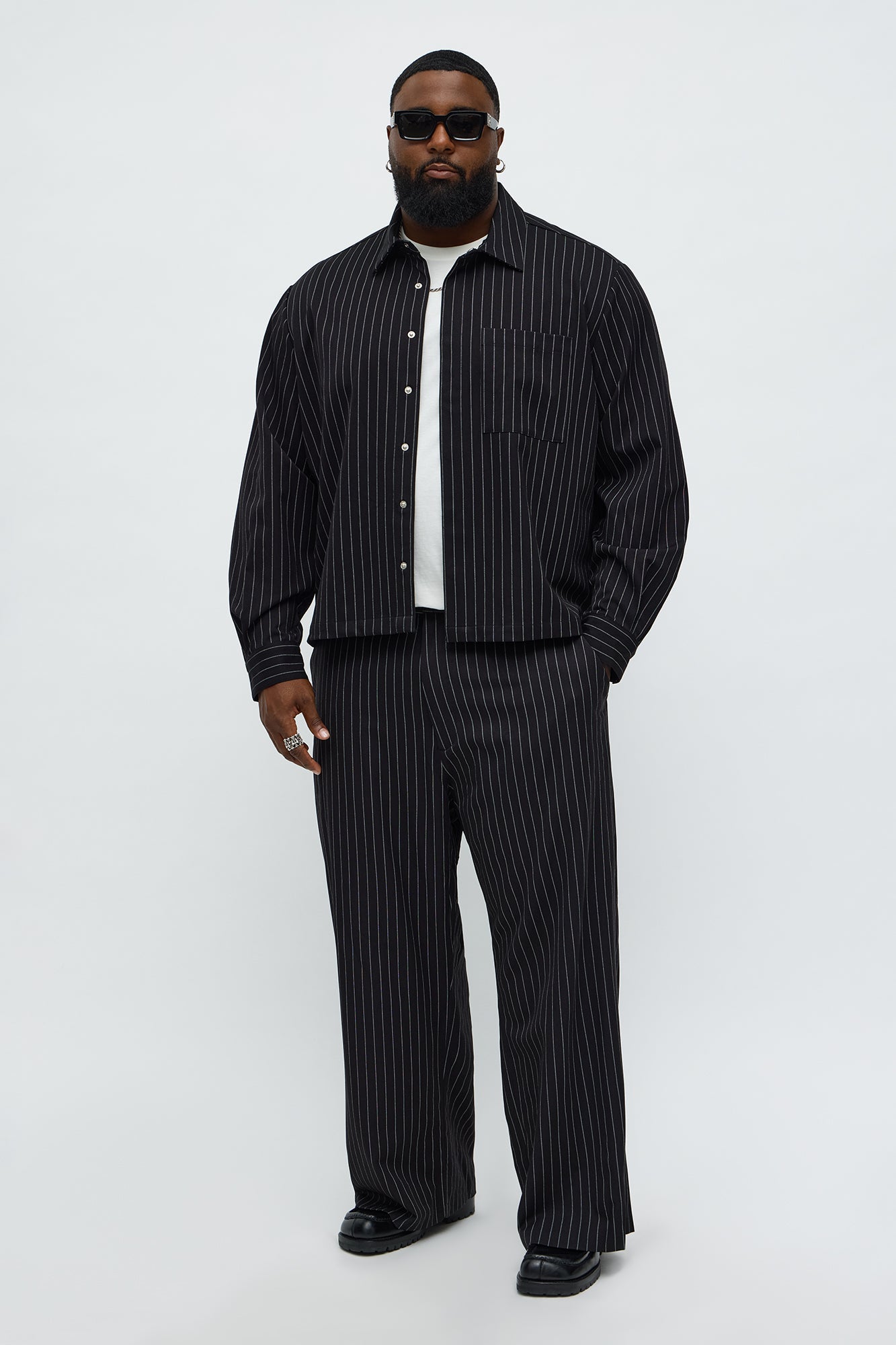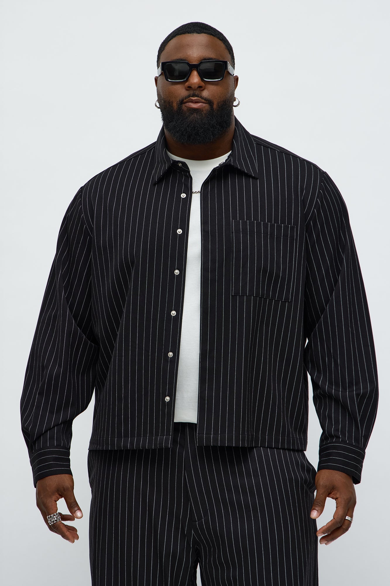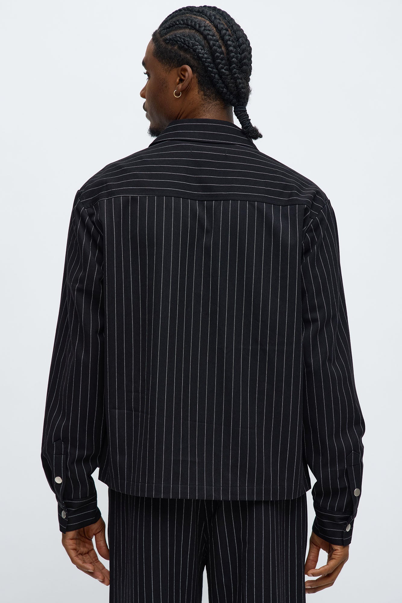 Cropped Striped Button Up Shirt - Black