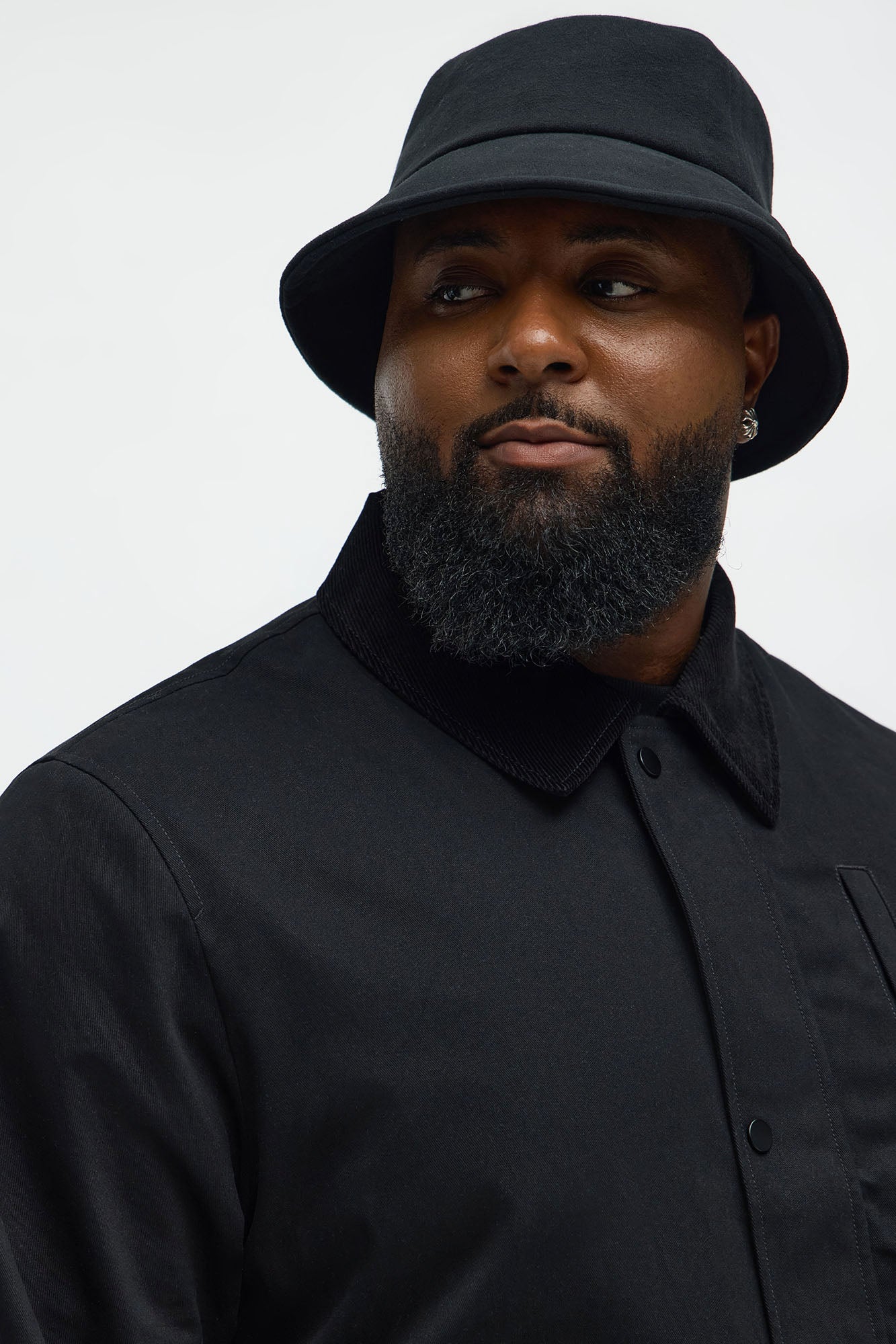 Cropped Utility Corduroy Collar Work Jacket - Black