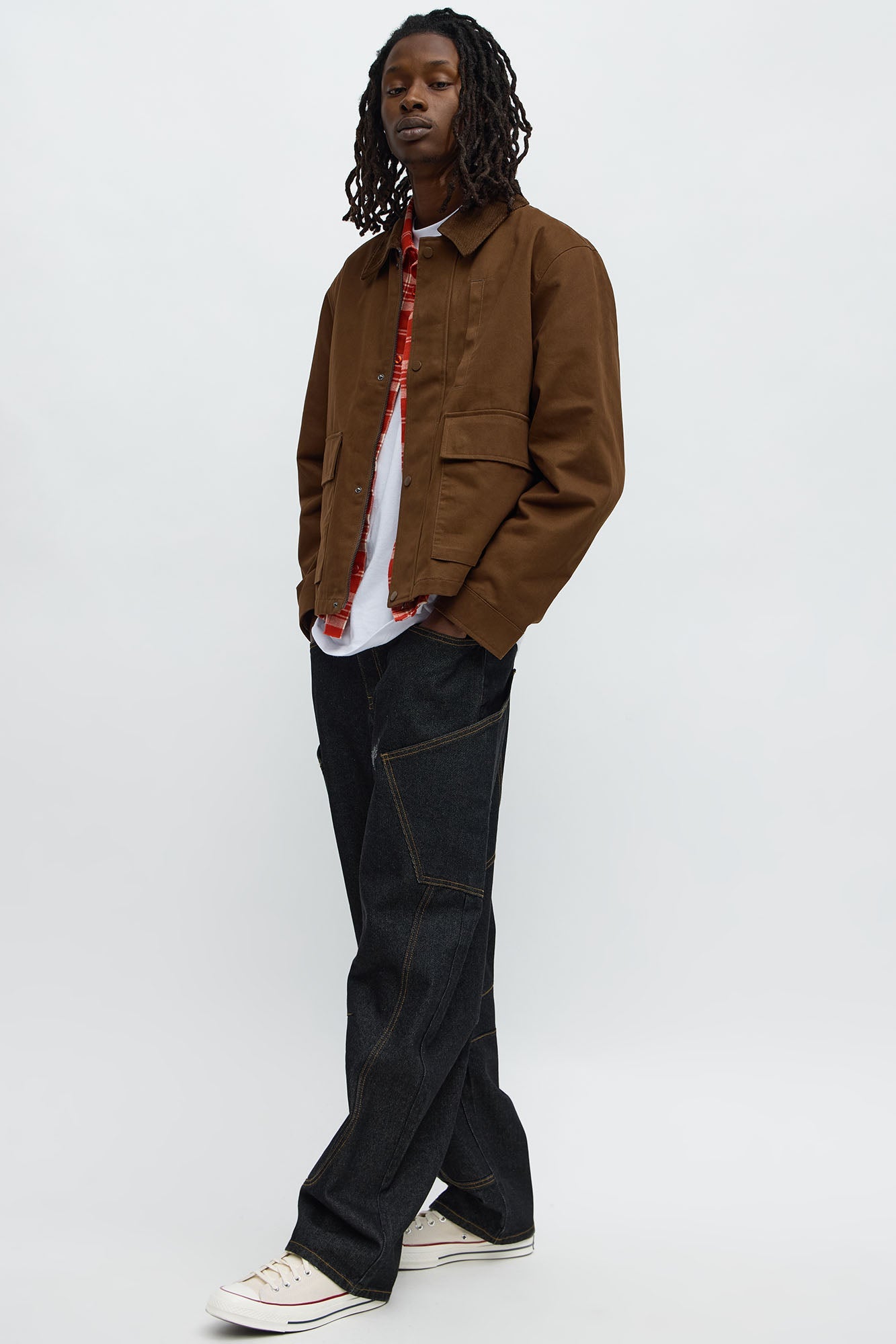 Cropped Utility Corduroy Collar Work Jacket - Brown