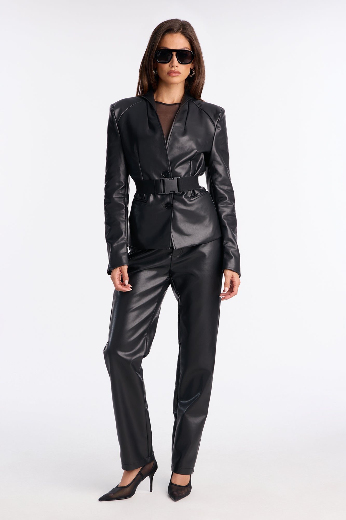 Dark Diva Faux Leather Blazer Pant Set - Black