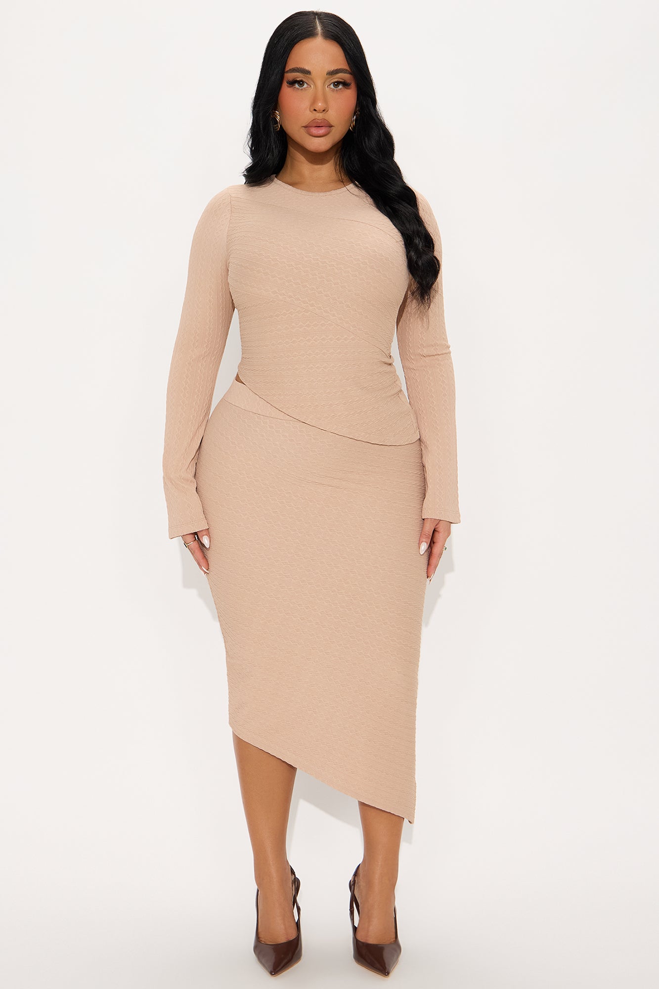 Date Ready Asymmetrical Textured Midi Skirt Set - Taupe
